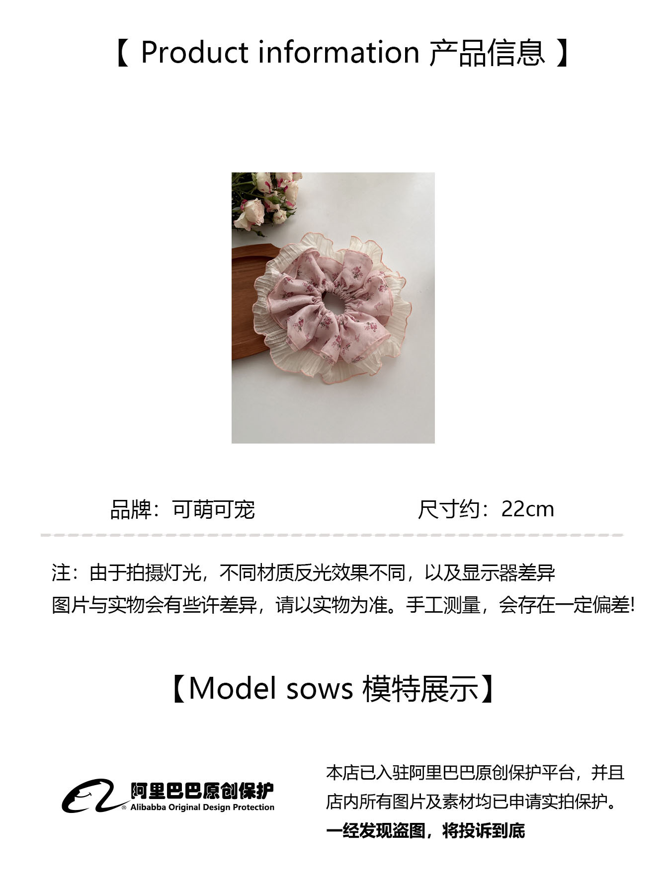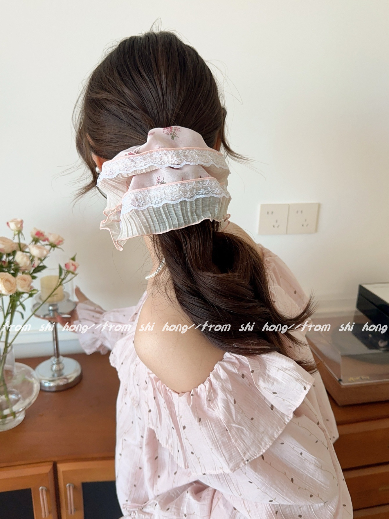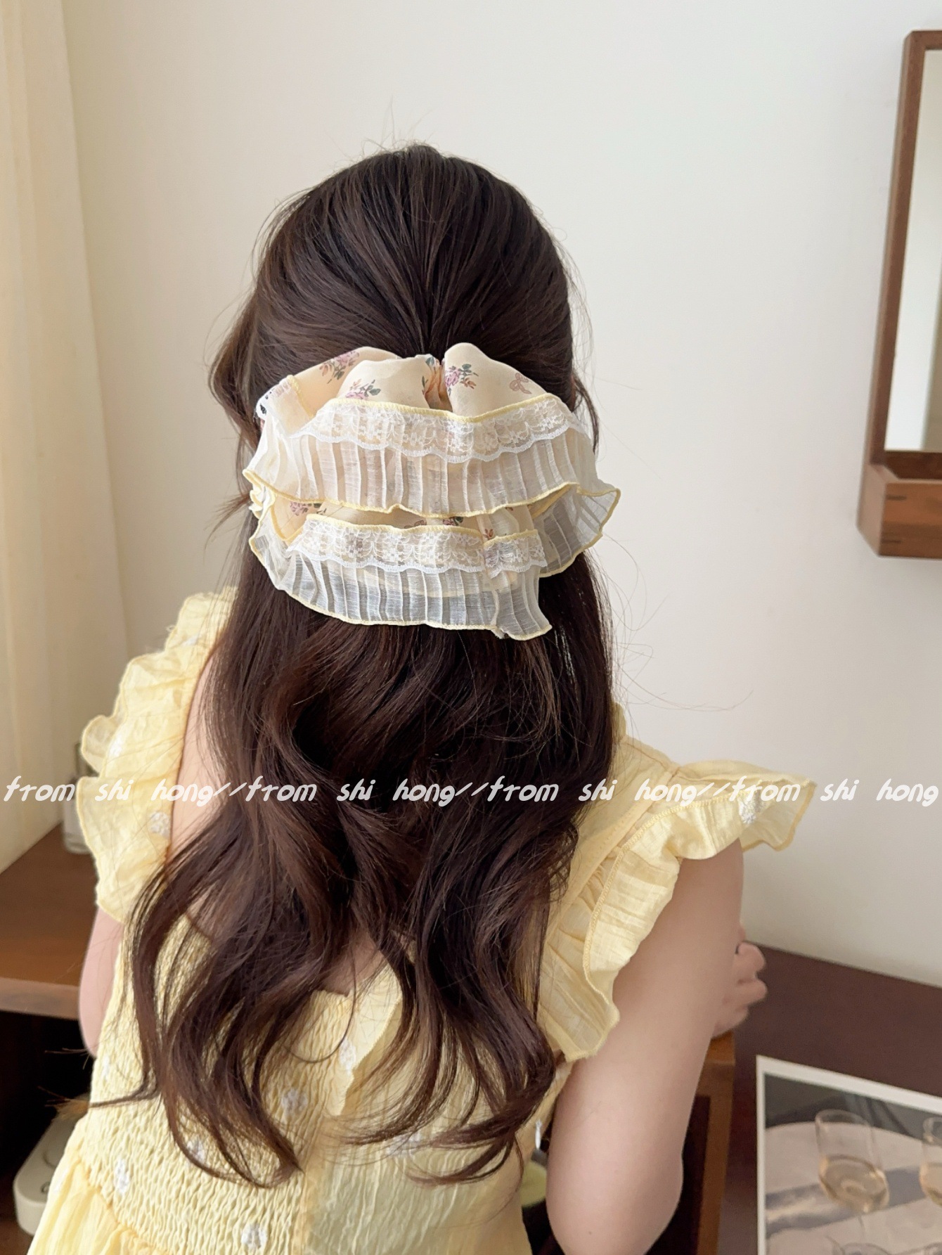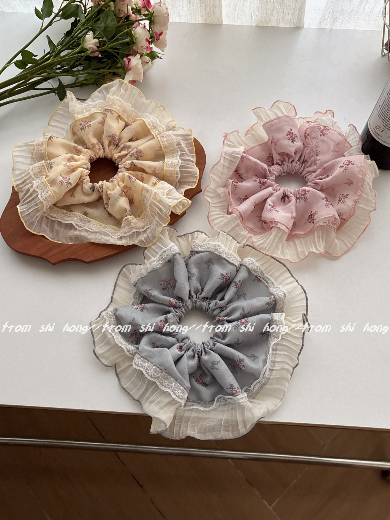 여름 신선하고 달콤한 꽃 러플 레이스 대형 장내 헤어 링 여성 한국 스타일 볼 헤어 로프 낮은 말굽 헤드웨어스토어 가기