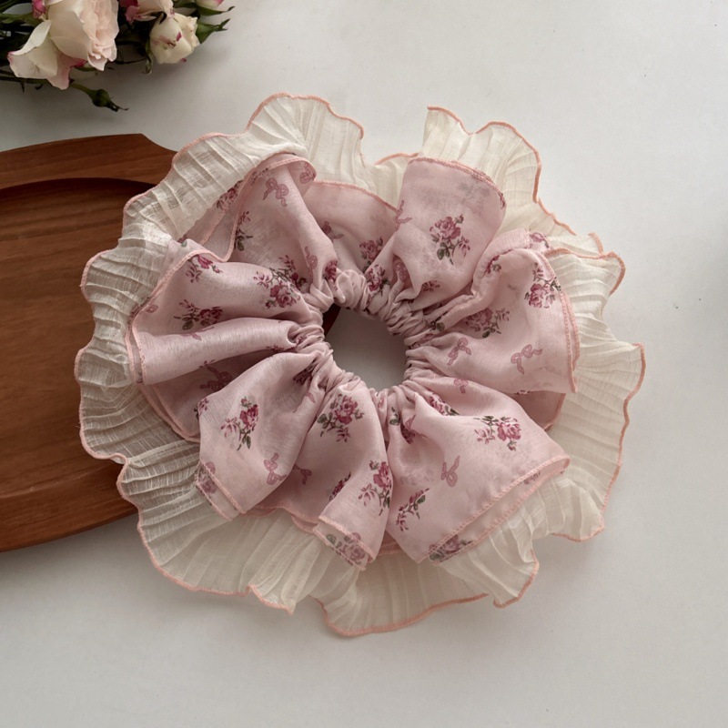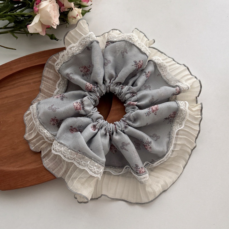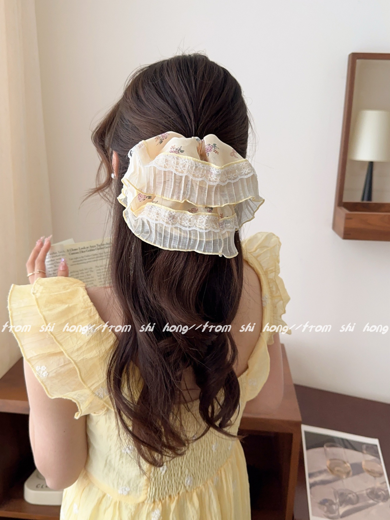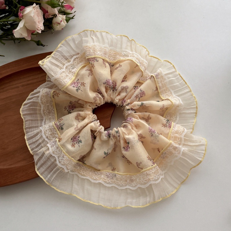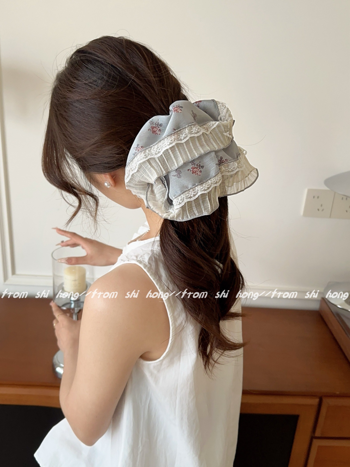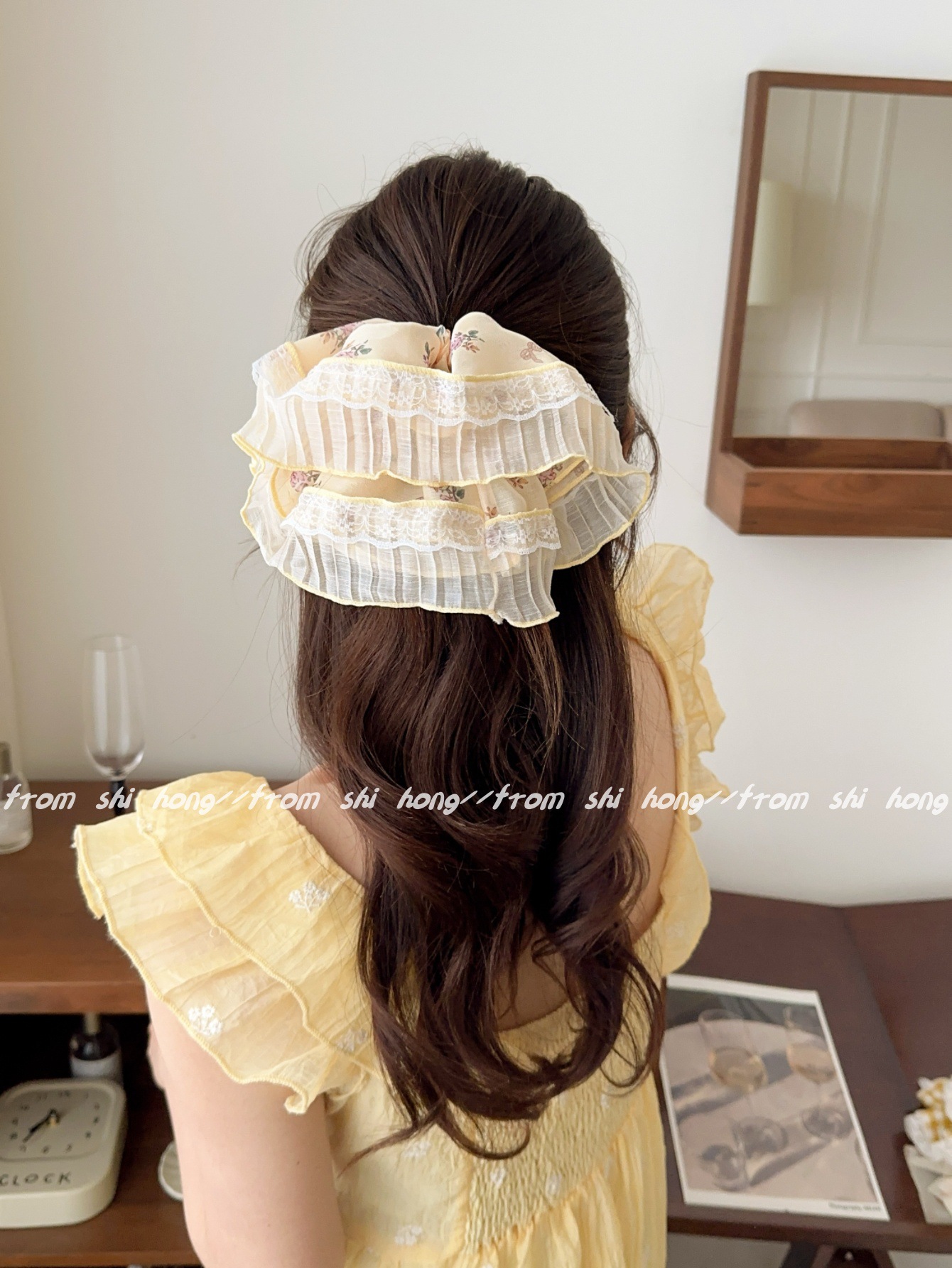여름 신선하고 달콤한 꽃 러플 레이스 대형 장내 헤어 링 여성 한국 스타일 볼 헤어 로프 낮은 말굽 헤드웨어스토어 가기