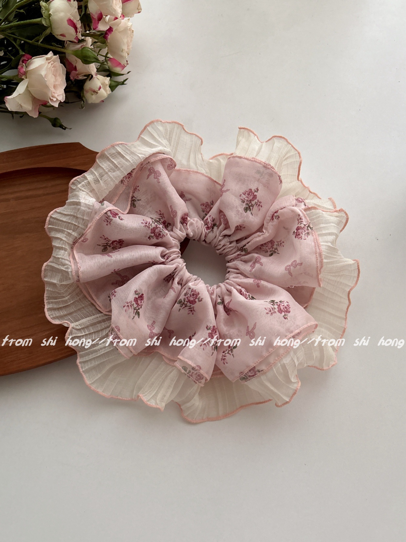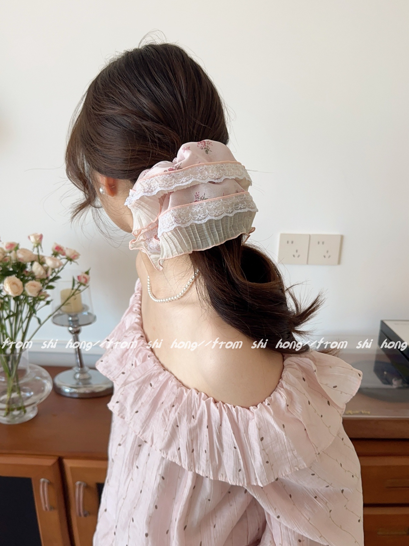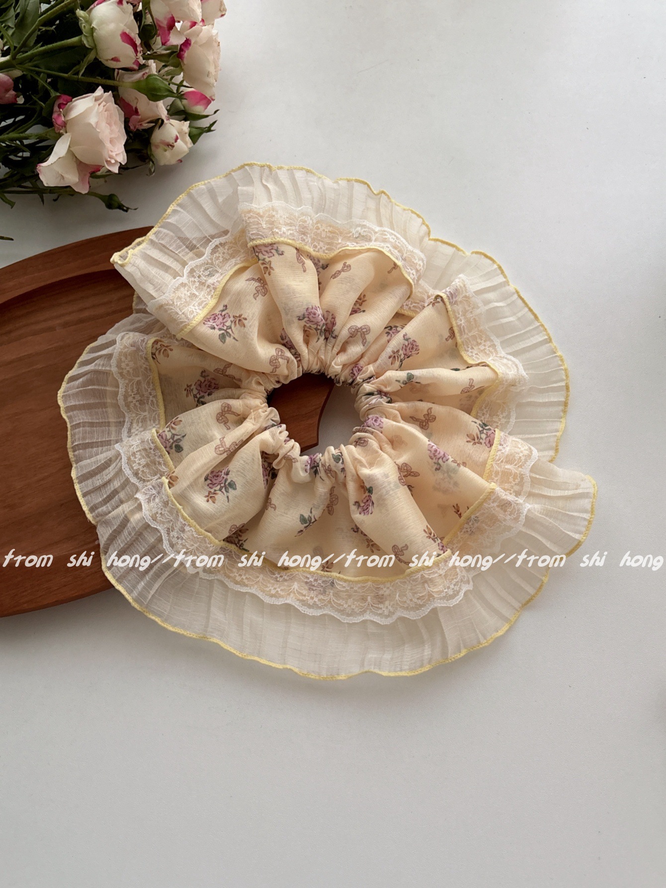 여름 신선하고 달콤한 꽃 러플 레이스 대형 장내 헤어 링 여성 한국 스타일 볼 헤어 로프 낮은 말굽 헤드웨어