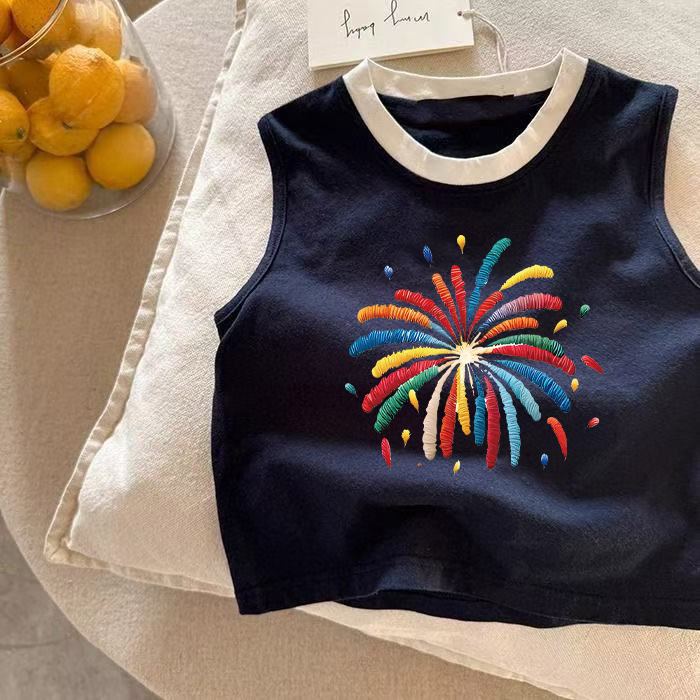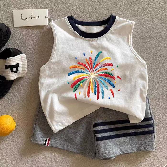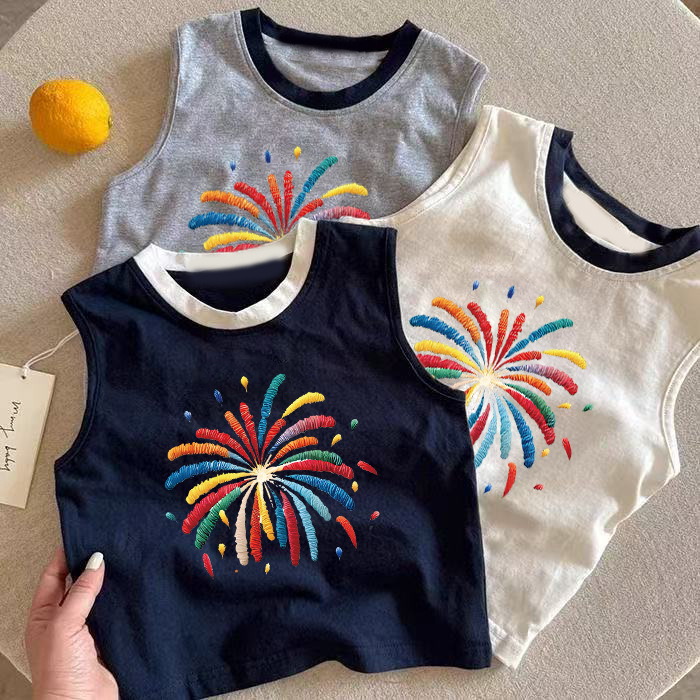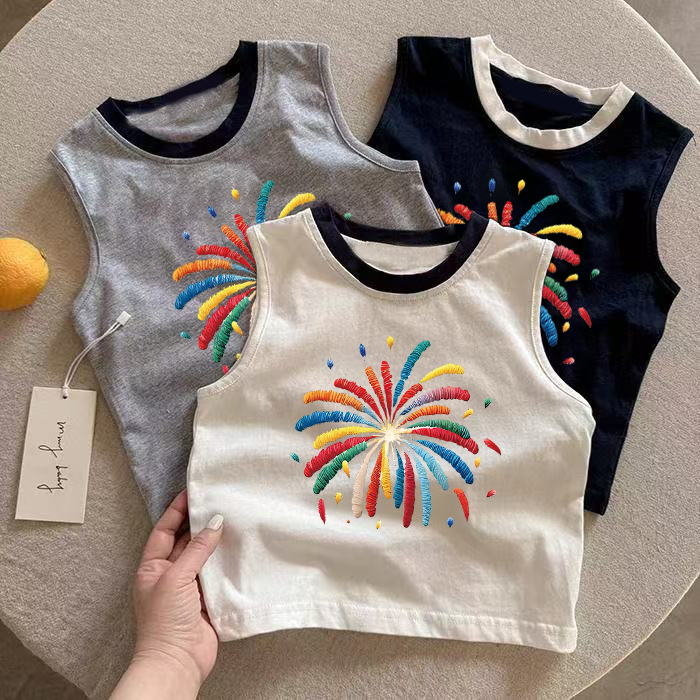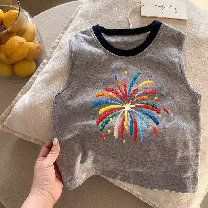 소년 소녀를위한 어린이 여름 새로운 면 민소매 탑 아기 서양식 인쇄 통기성 캐주얼 올 매치 작은 조끼