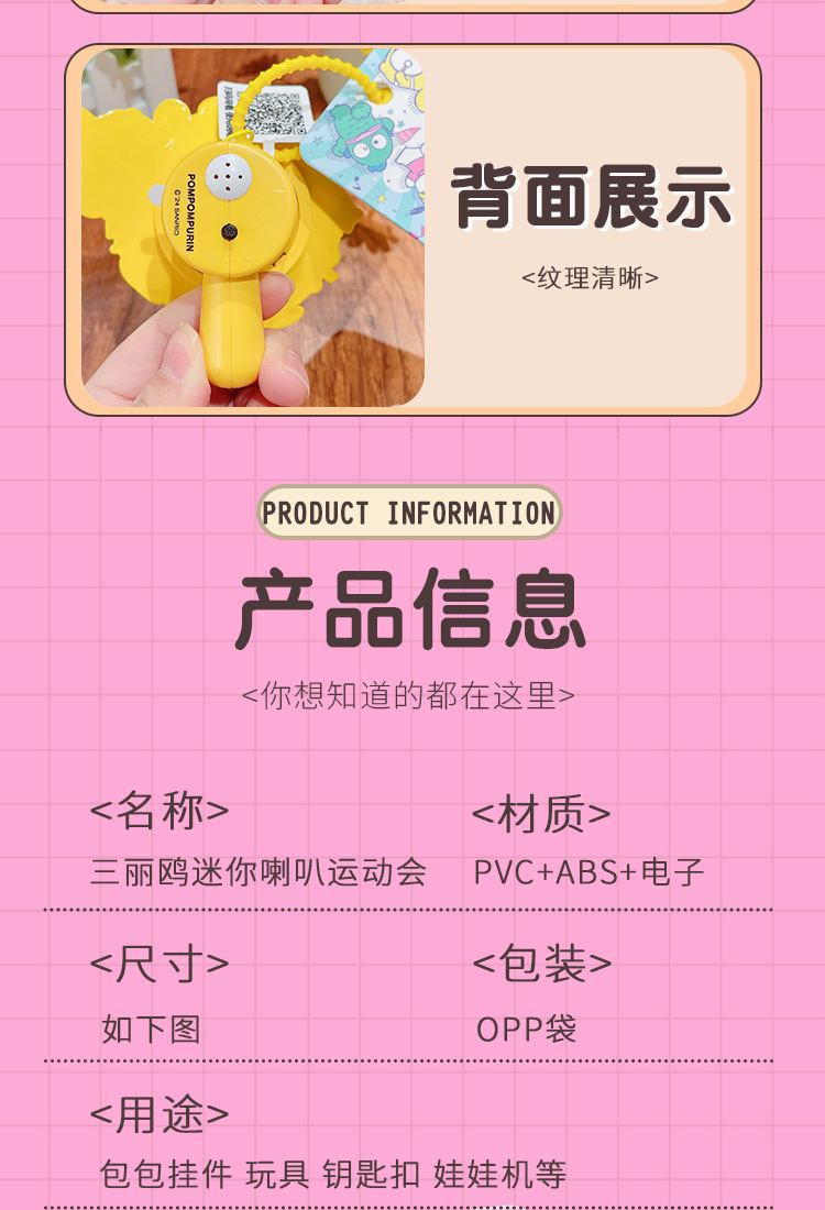 정품 만화 산리오 녹음 스피커 펜던트 크리 에이 티브 키 체인 Kuromi 감압 장난감 학교 가방 펜던트스토어 가기