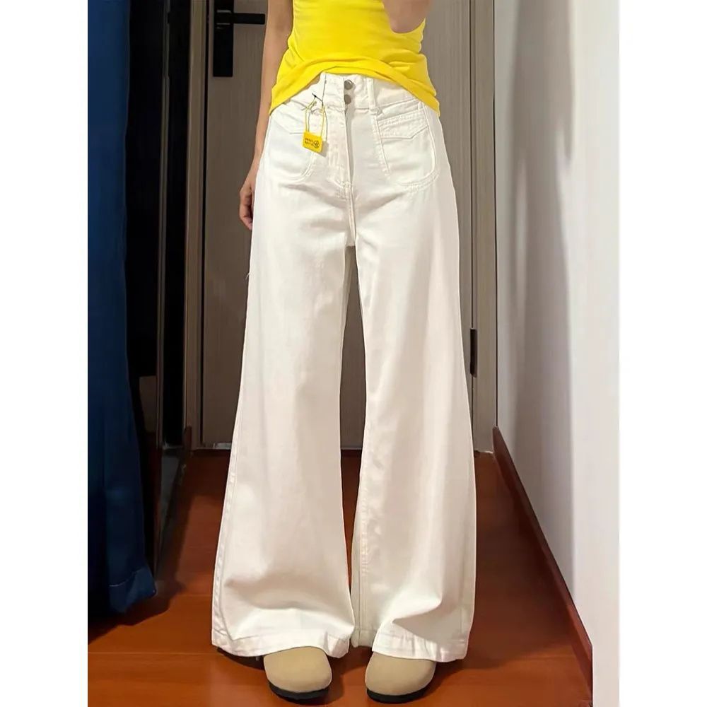 빈티지 화이트 와이드 레그 청바지 여성용 봄 배 모양의 몸 느슨한 슬리밍 올 매치 딥 플러스 사이즈 바지스토어 가기
