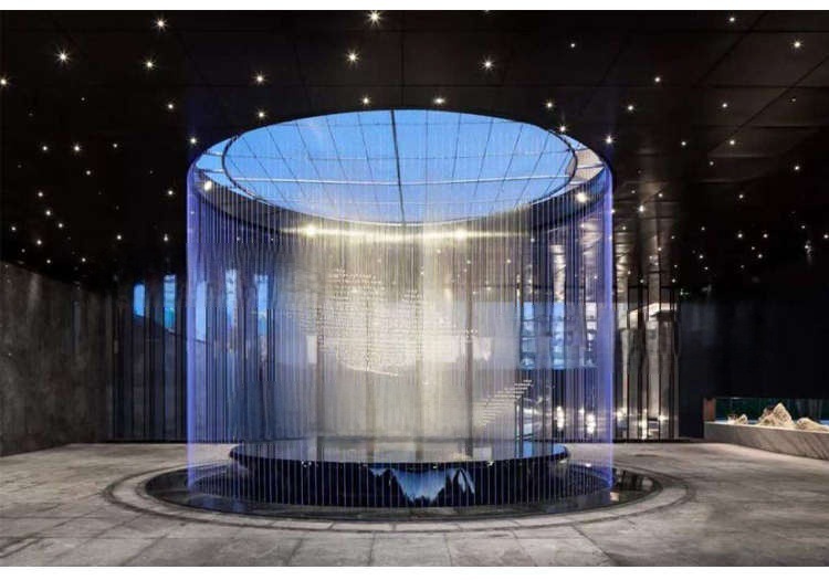 디지털 워터 커튼 애니메이션 디지털 워터 커튼 CNC 스크린 야외 풍경 광섬유 케이블 금속 메쉬 워터 커튼 분수스토어 가기