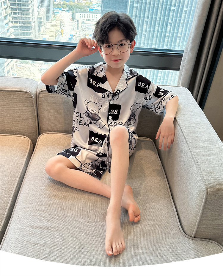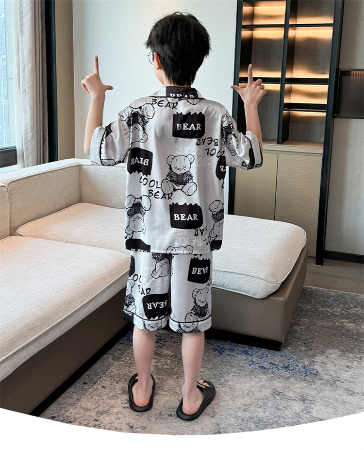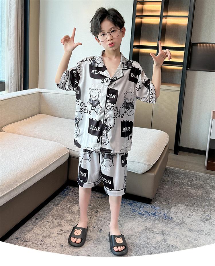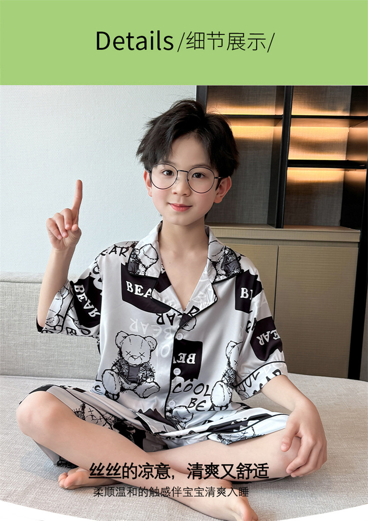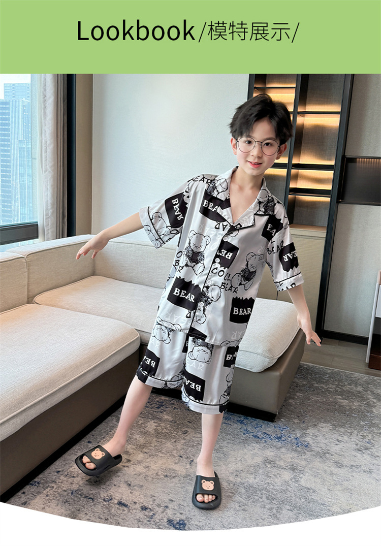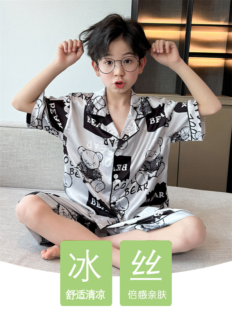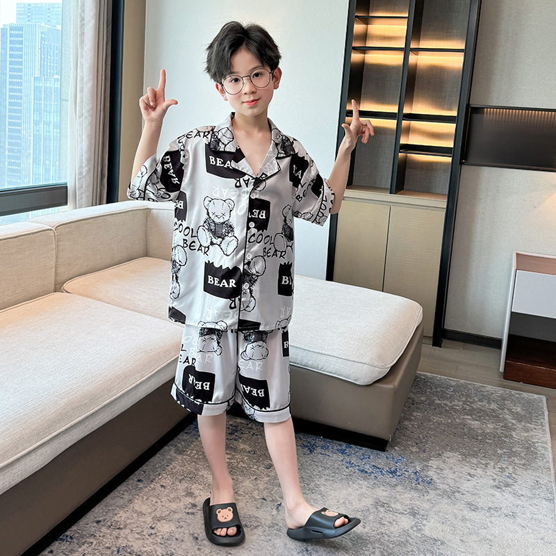 어린이 잠옷 여름 얼음 실크 2025 소년 가정 의류 여름 얇은 어린이 에어컨 의류 큰 어린이 반바지 정장스토어 가기