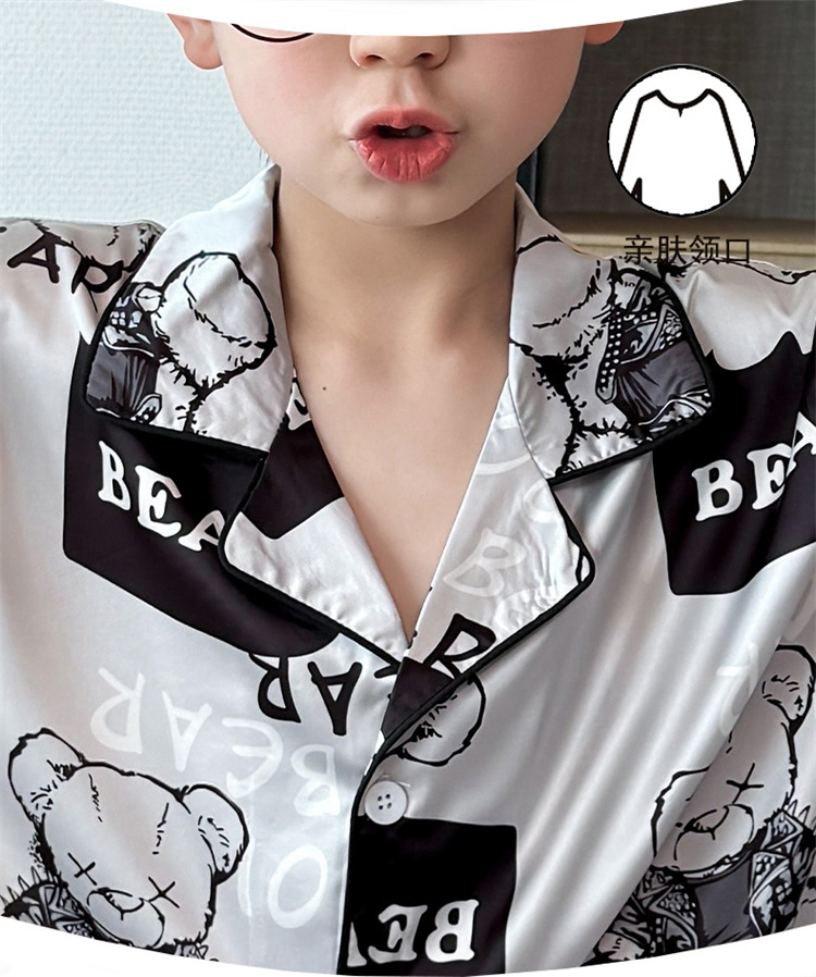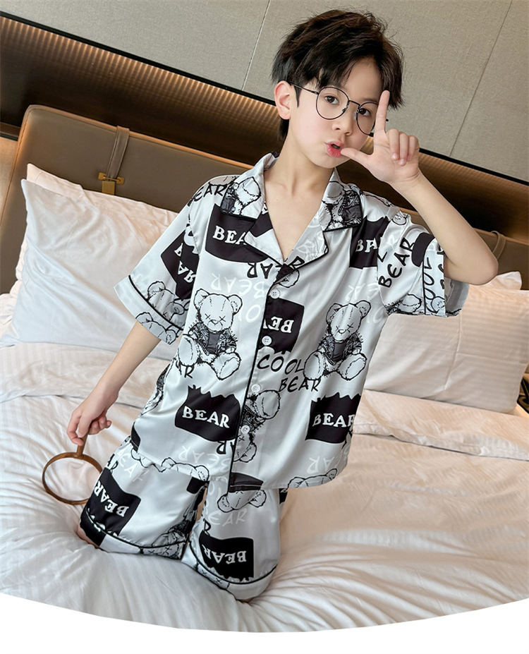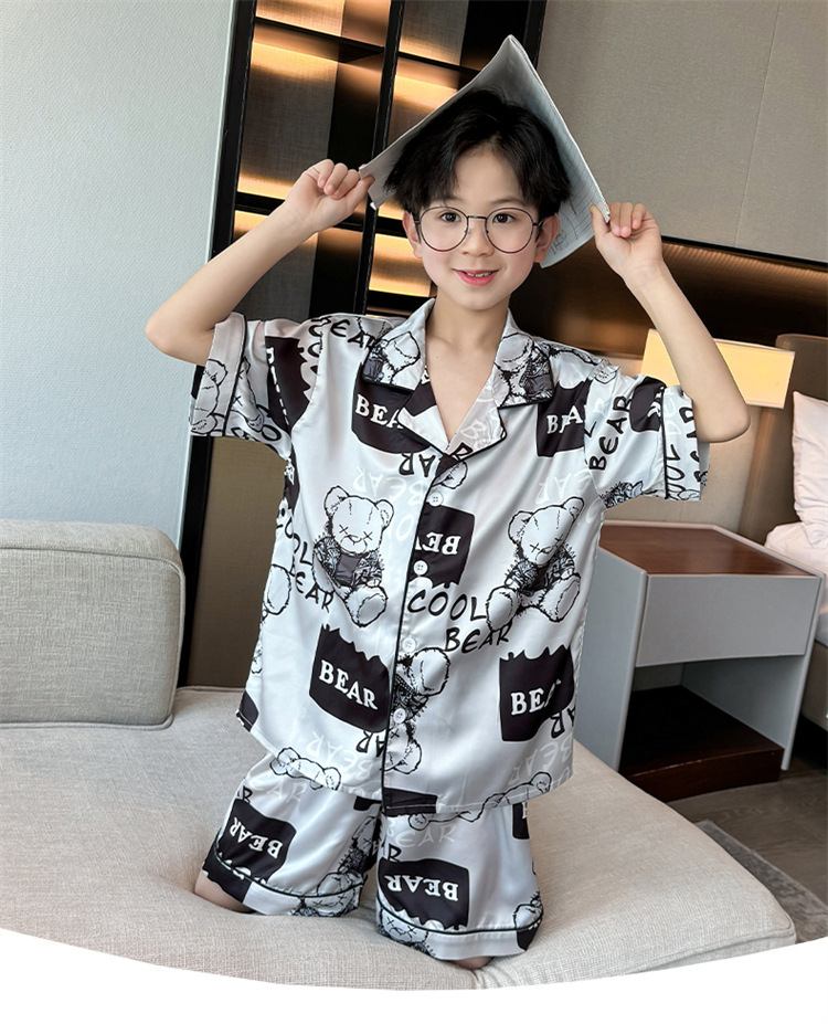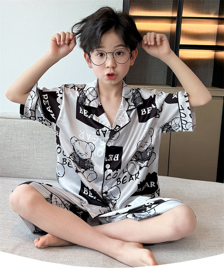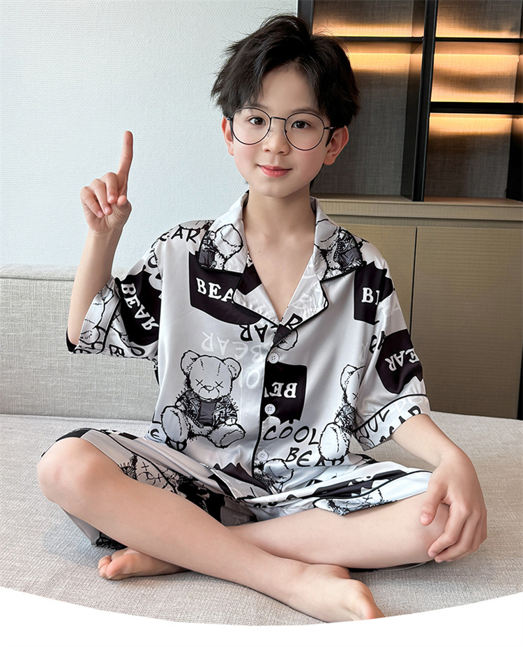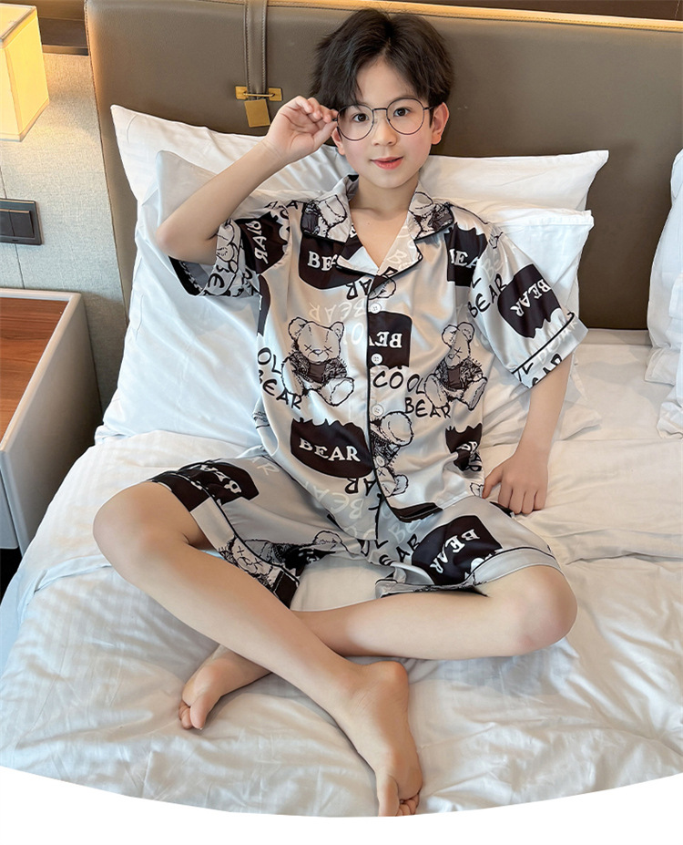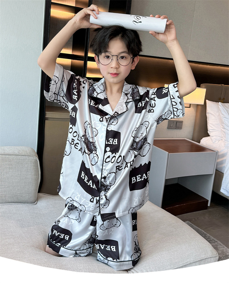 어린이 잠옷 여름 얼음 실크 2025 소년 가정 의류 여름 얇은 어린이 에어컨 의류 큰 어린이 반바지 정장스토어 가기