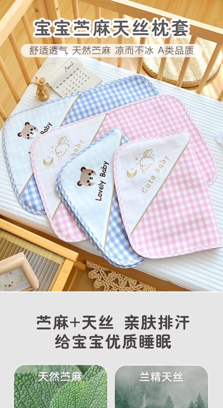 아기 라미 텐셀 베개 케이스 신생아 땀 흡수 통기성 유치원 어린이 싱글 체인지 낮잠 베개 헤드 기어