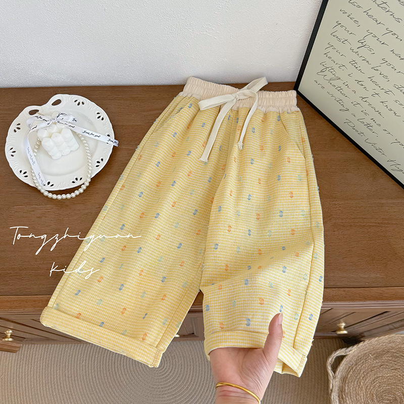 한국 패션 여름 노란 꽃 포인트 캐주얼 바지 귀여운 인쇄 도파민 착용 만화 서양 스타일 올 매치 바지