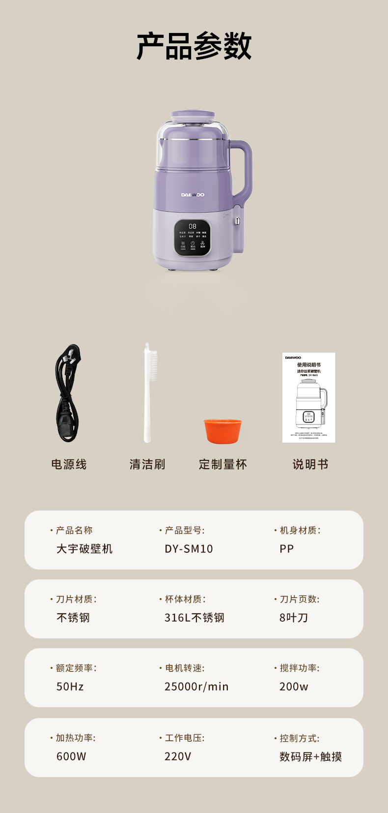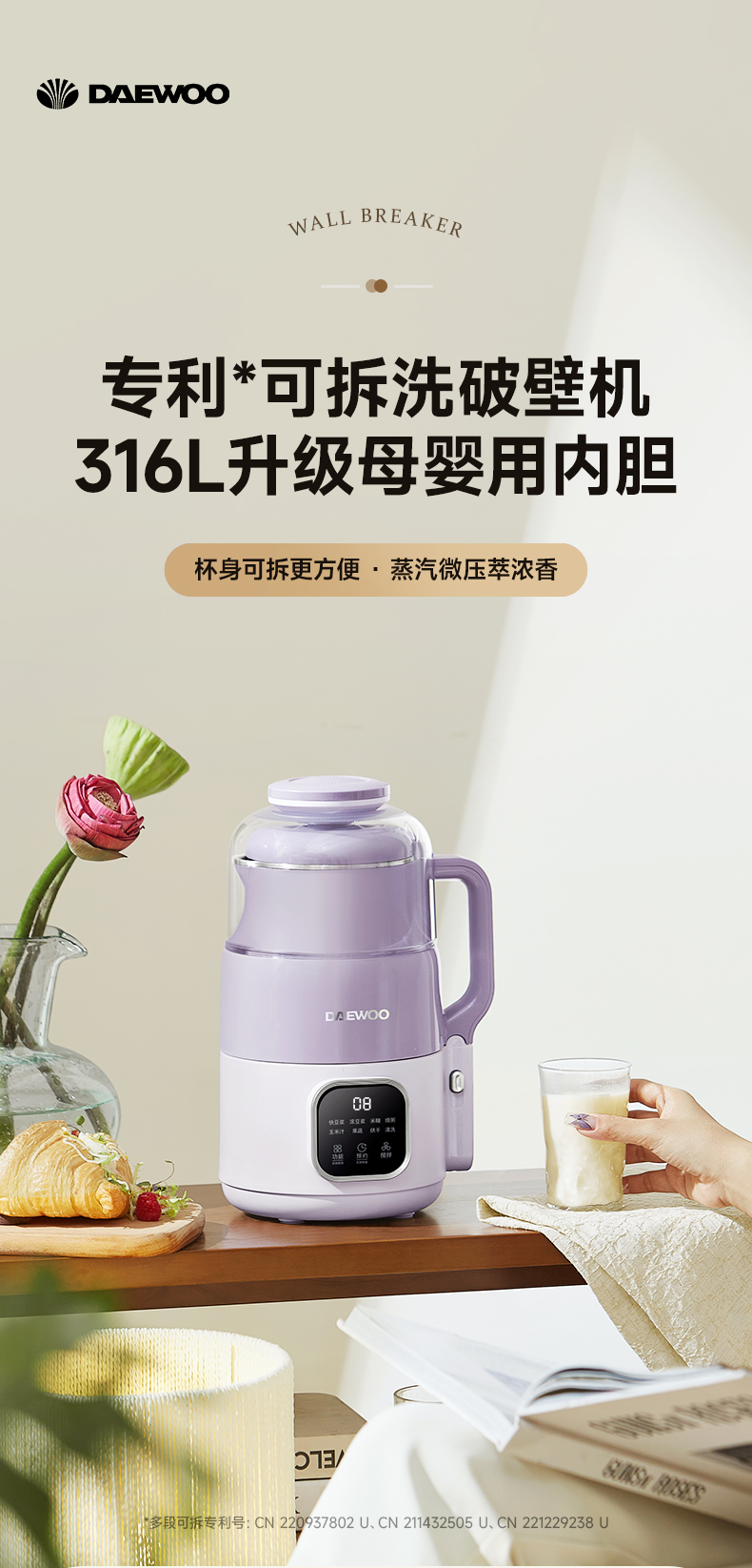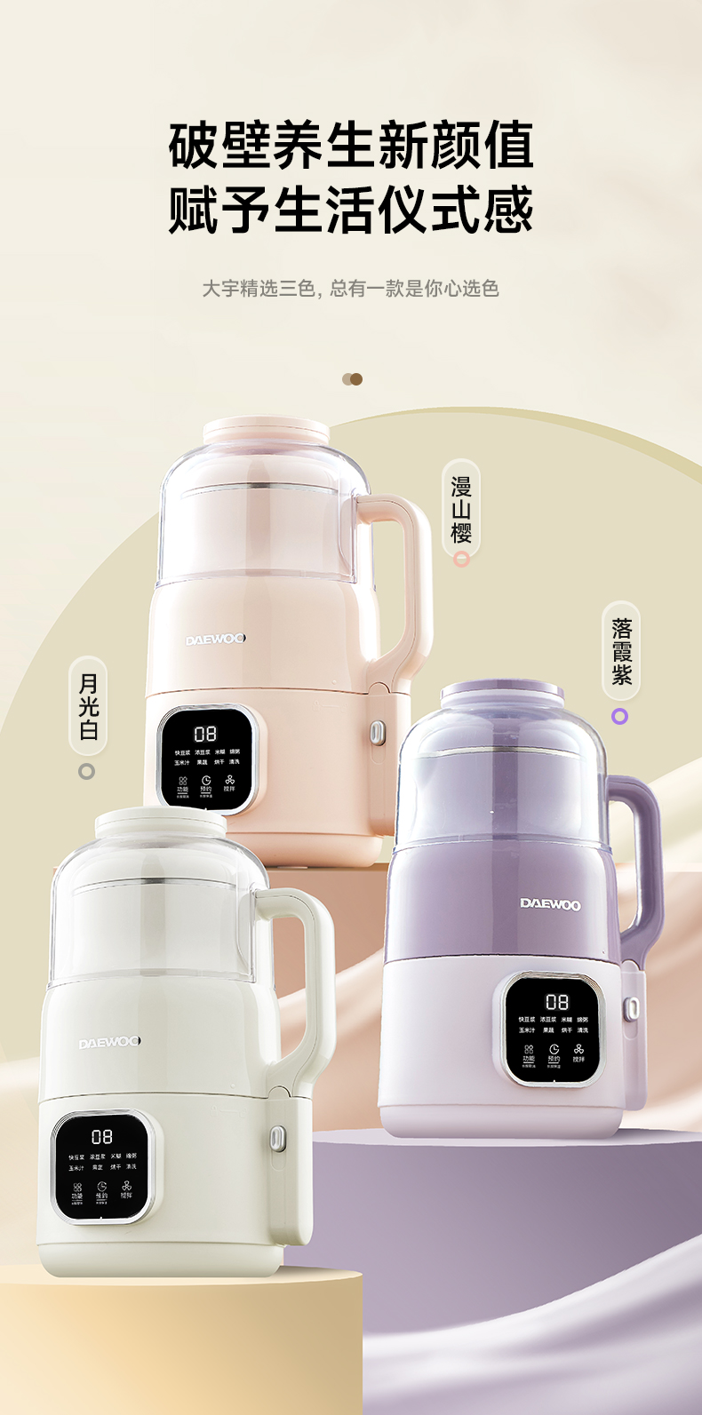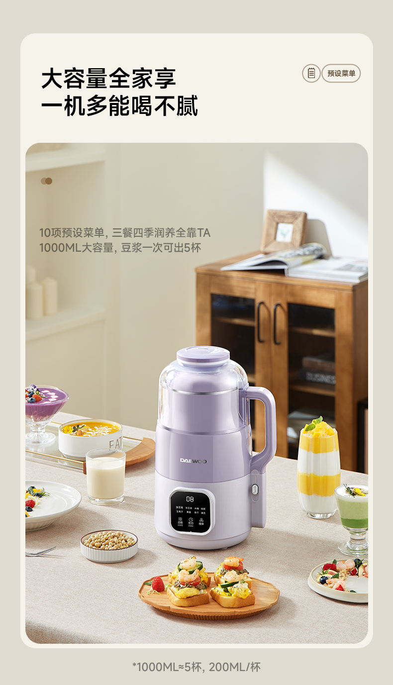 대우 DC 가변 속도 분리 및 세척 가능 대용량 가정용 벽 파괴 기계 소형 두유 기계 다기능 요리 기계 자동
