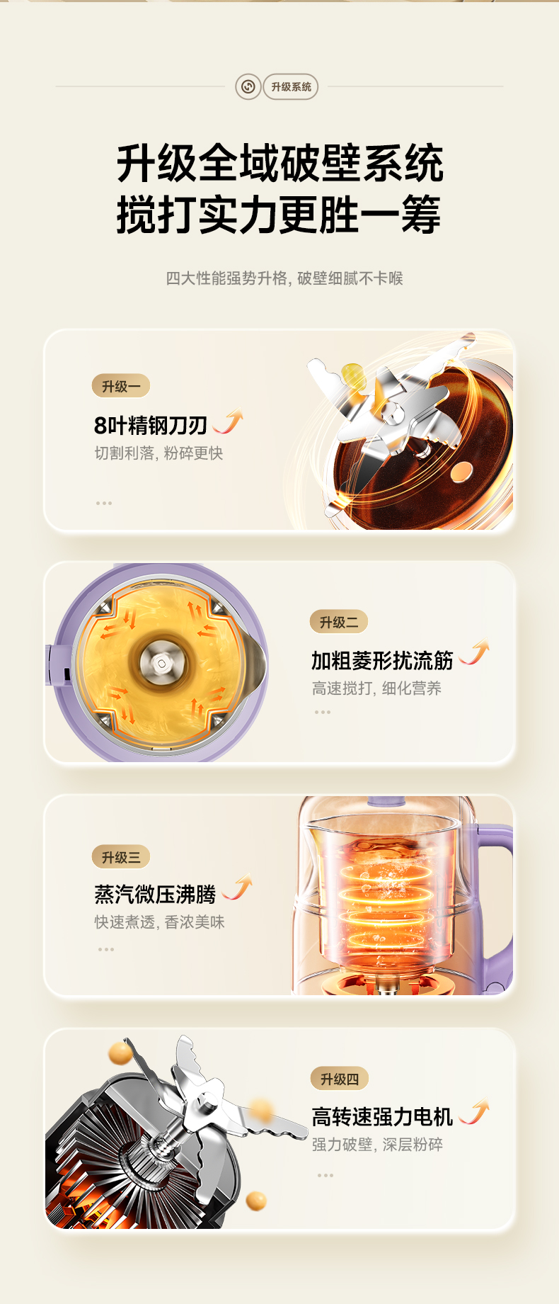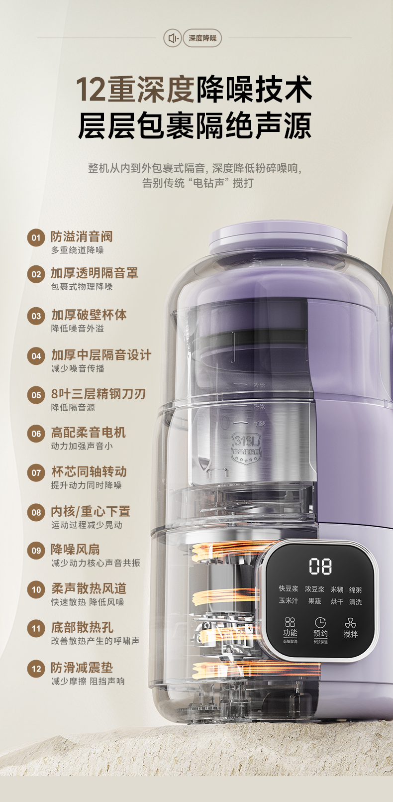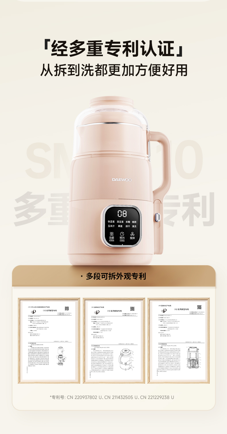 대우 DC 가변 속도 분리 및 세척 가능 대용량 가정용 벽 파괴 기계 소형 두유 기계 다기능 요리 기계 자동