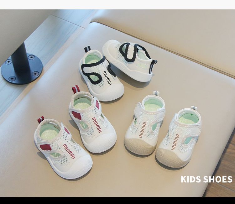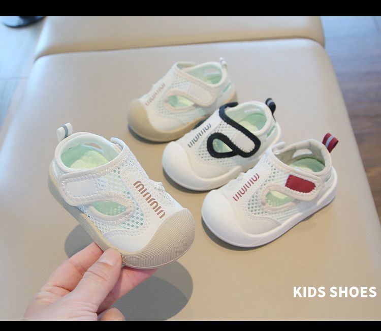 아기 소년 샌들 봄과 여름 통기성 단일 메쉬 신발 부드러운 단독 미끄럼 방지 1-3 세 소녀 유아 유아 신발 유행스토어 가기