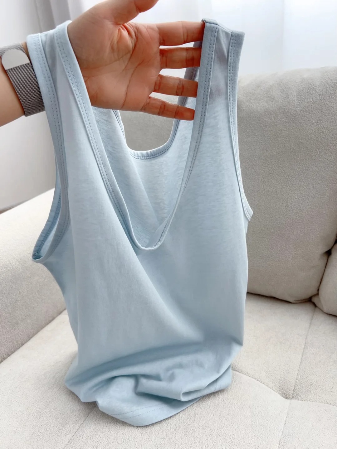 2026년 여름 얇은 U넥 눈꽃무늬 면마 민소매 조끼 여성용 가슴살 커버 루즈핏 베이스 레이어 민소매 탑스토어 가기