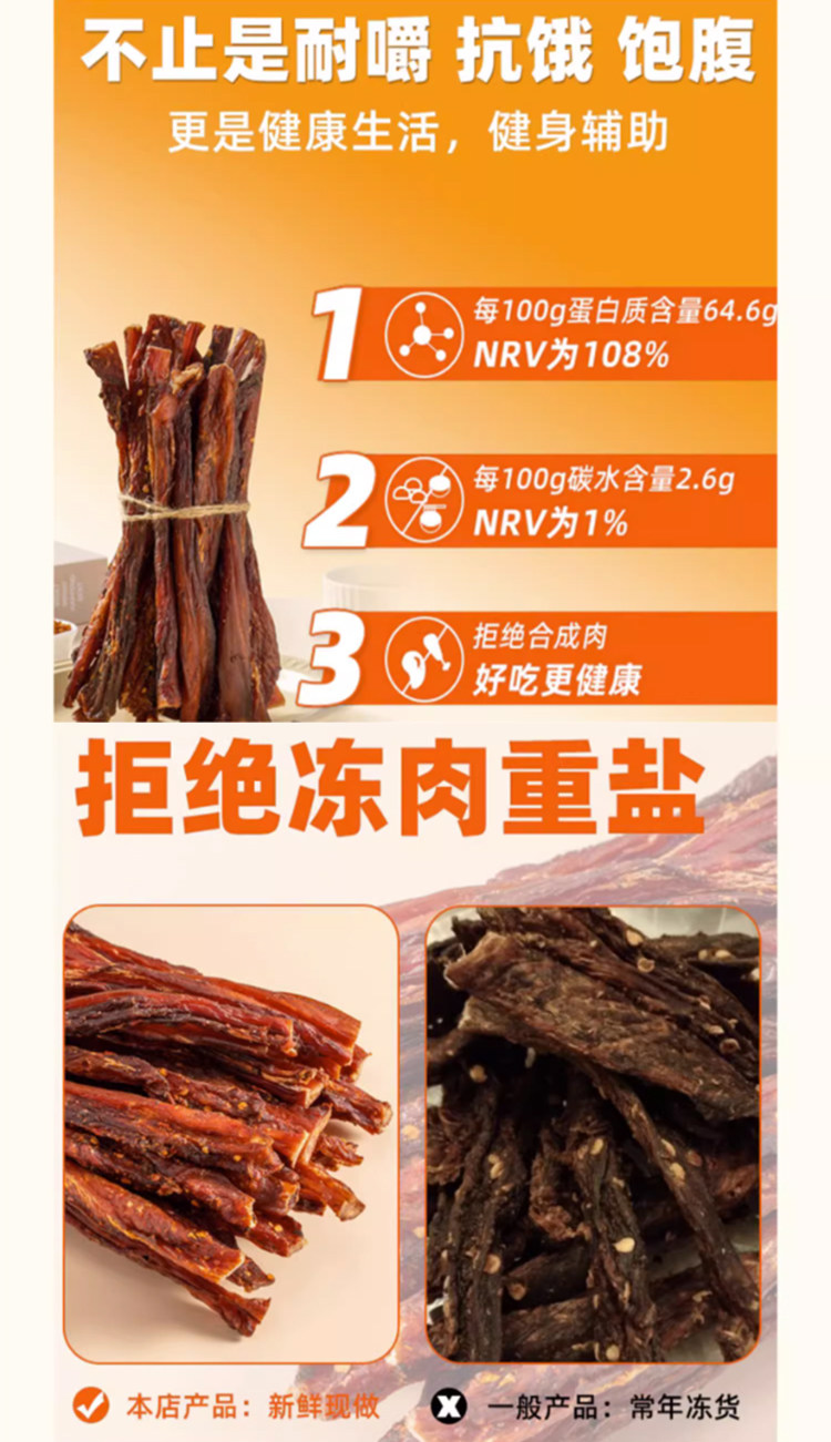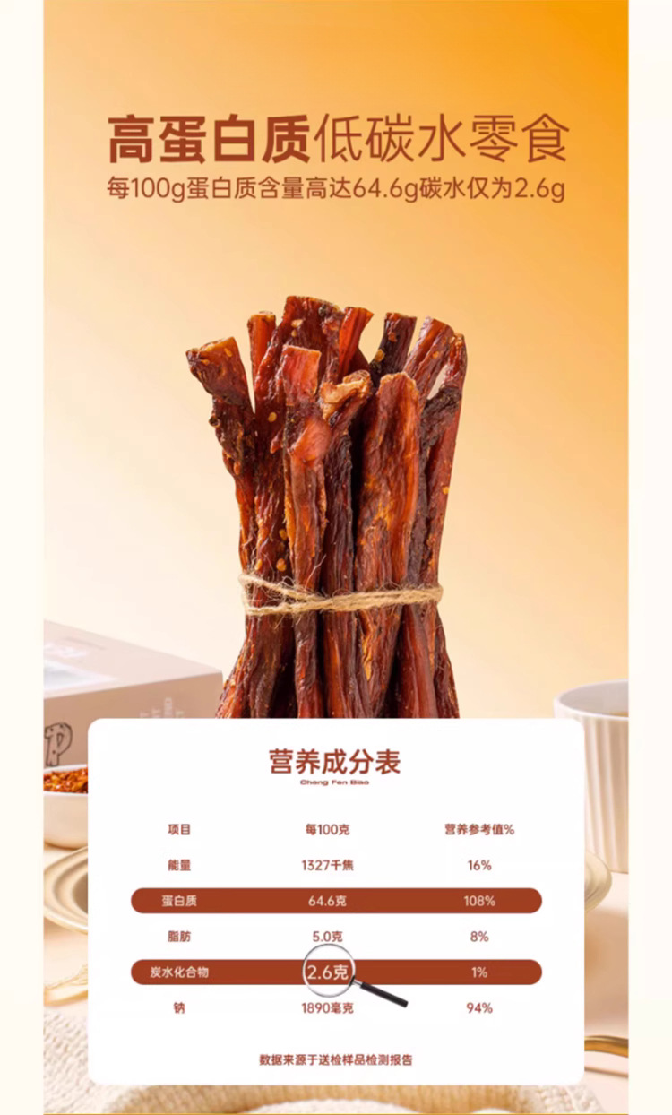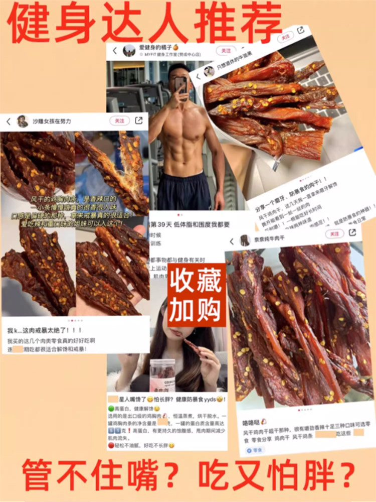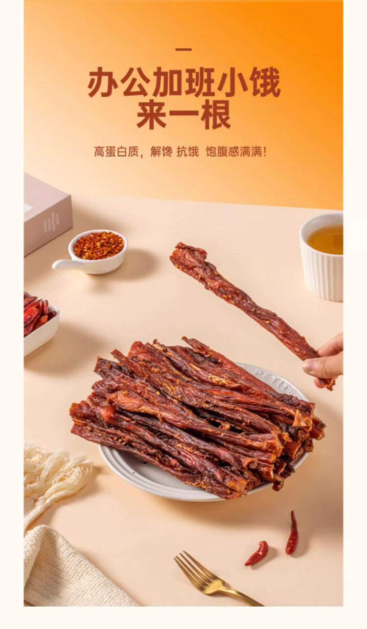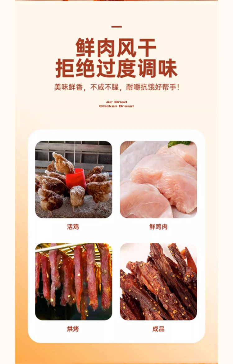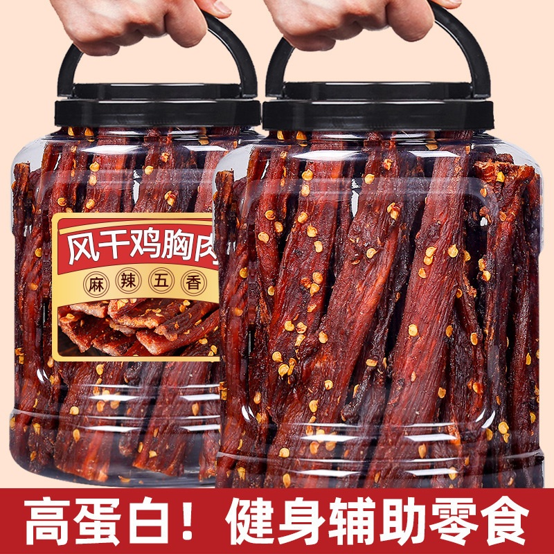 공기 건조 치킨 육포 대형 통조림 매콤한 닭 가슴살 육포 스트립은 쫄깃하고 배고픈 칼로리 감소 스낵입니다.스토어 가기