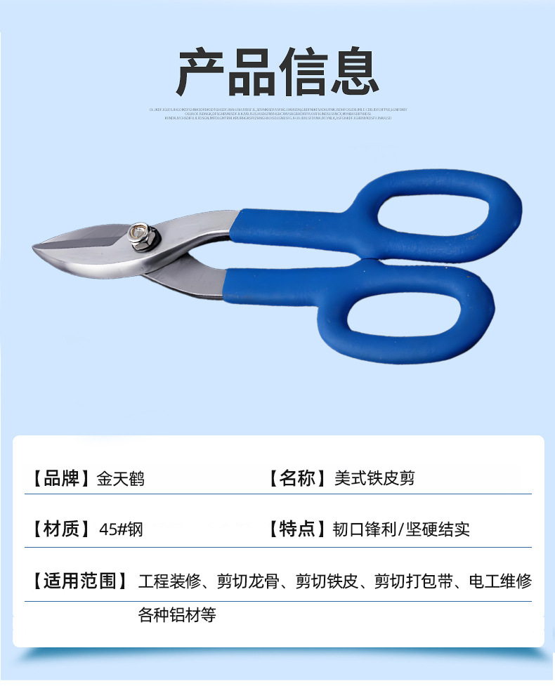 맞춤형 45 # 강철 직선 헤드 철판 가위 8인치 10인치 12inch 14inch 미국식 철판 가위 철망 가위