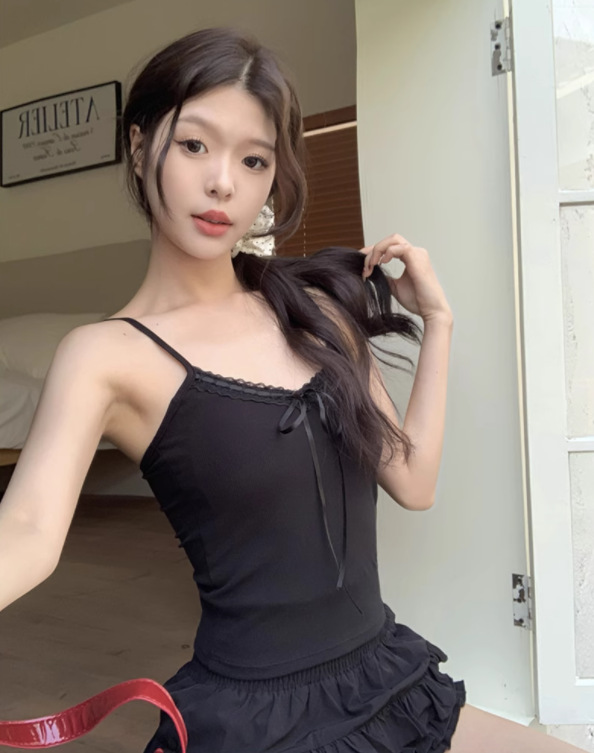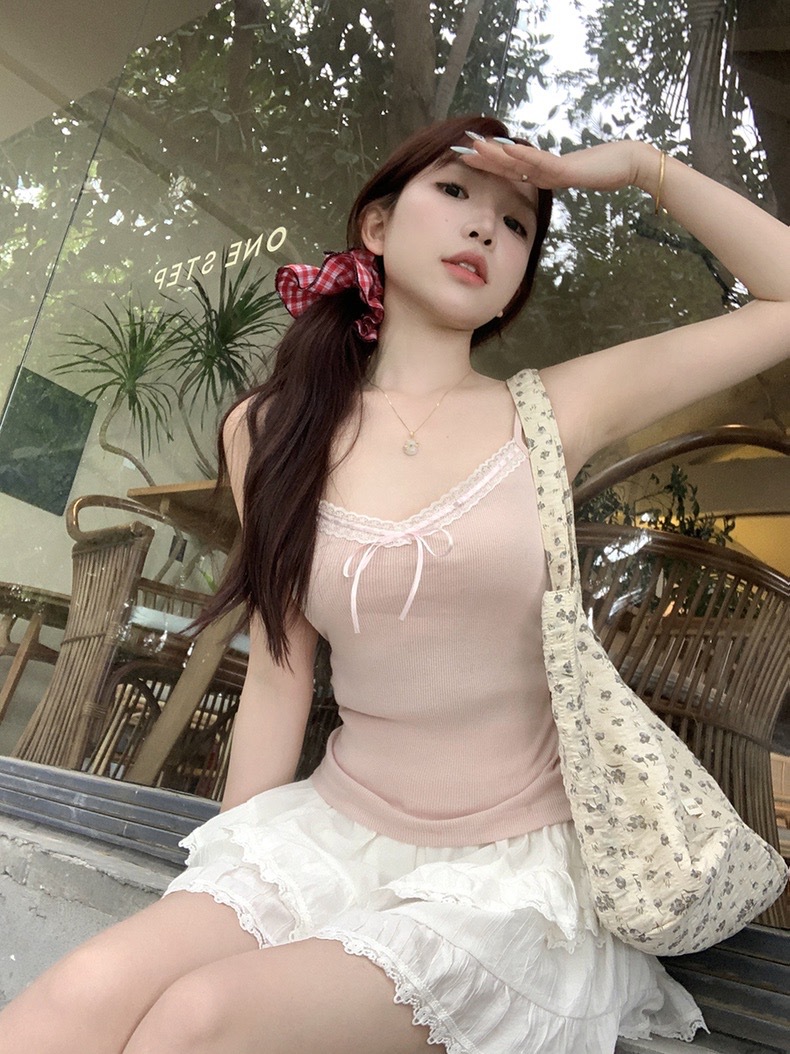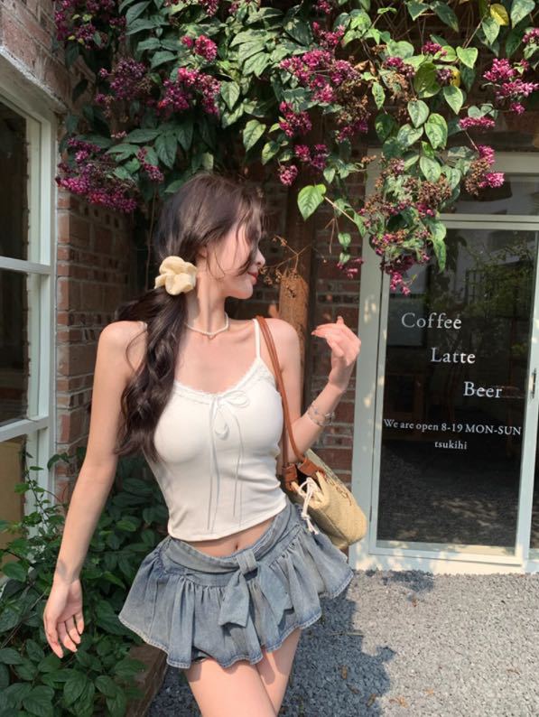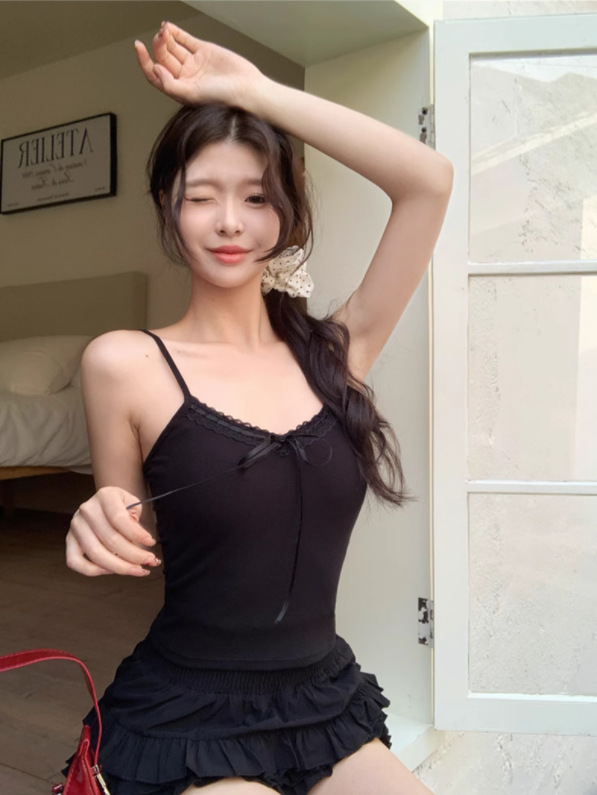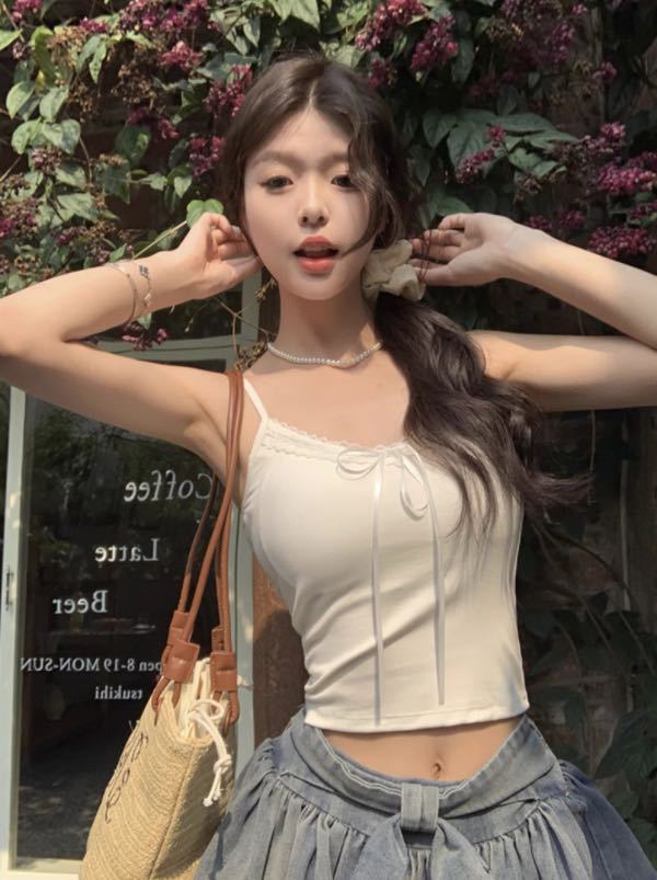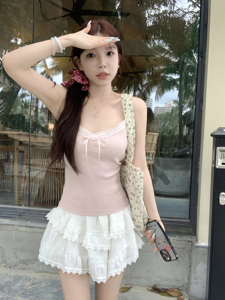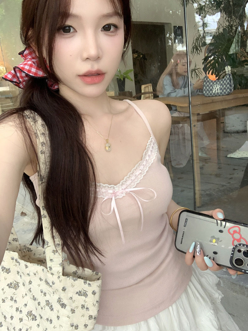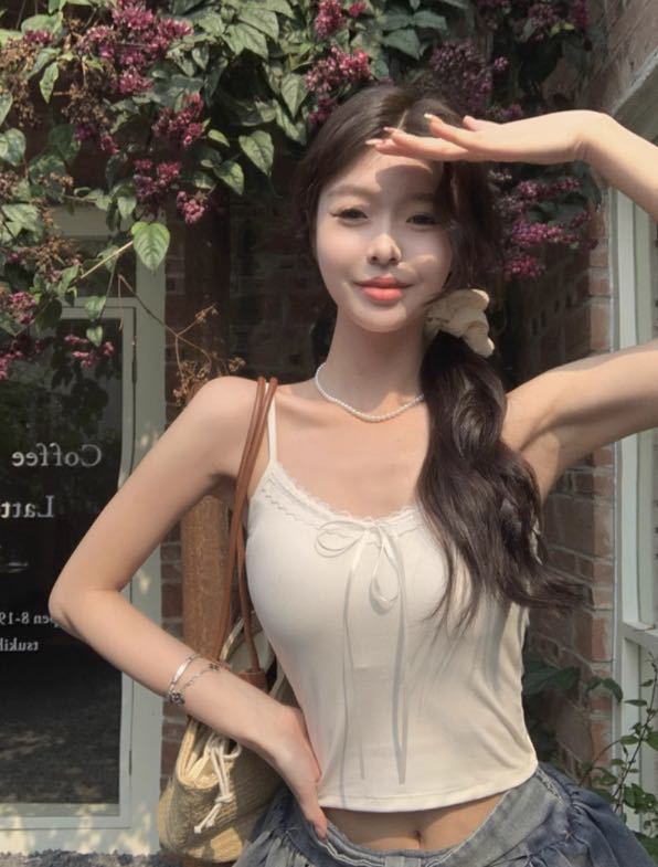 여름 순수한 욕망 짧은 뜨거운 소녀 카미 솔 조끼 가슴 패드 외부 착용 레이스 슬림 핏 슬리밍 내부 최고 여성