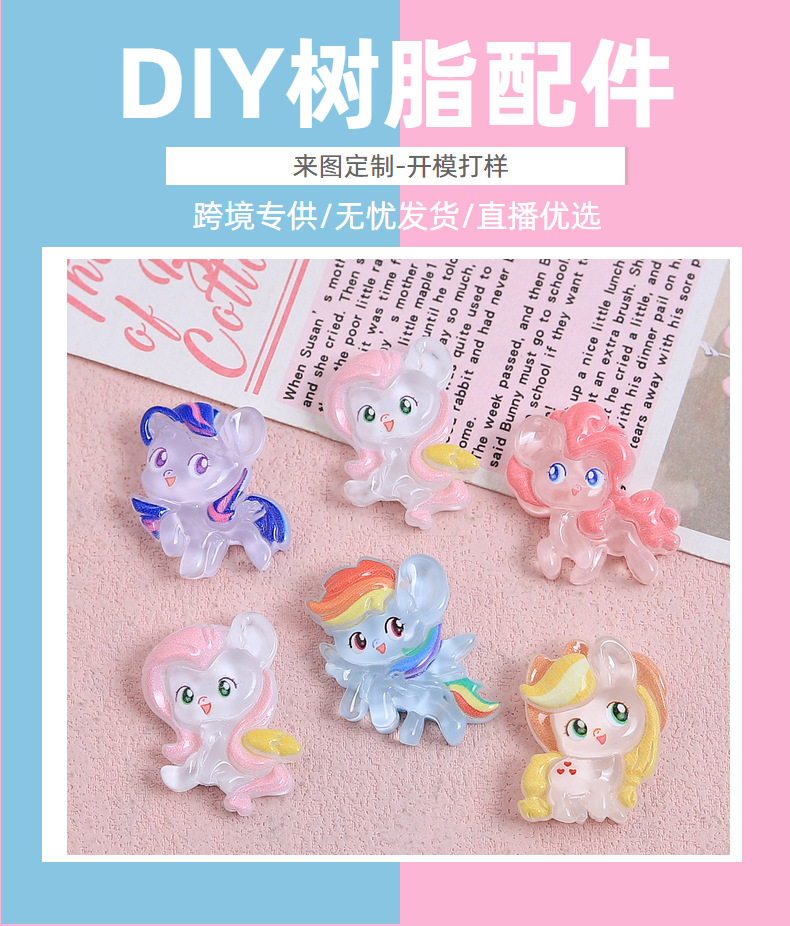 만화 귀여운 얼음 투명 조랑말 크리 에이 티브 수제 diy 크림 접착제 수지 액세서리 작은 액세서리 보석 재료 도매
