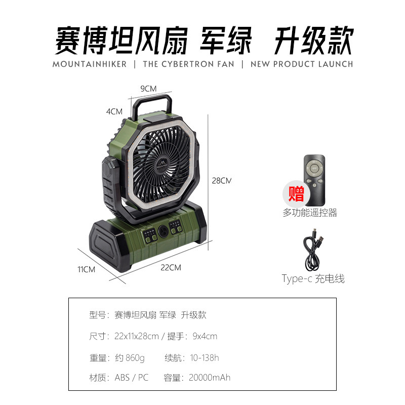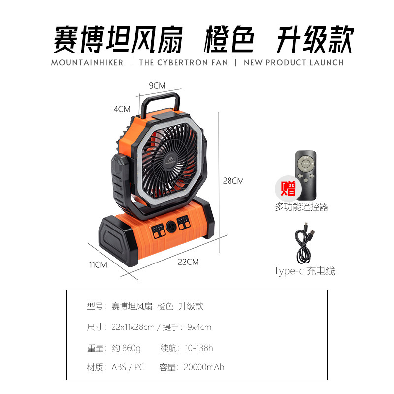 Mountain Guest Cybertron 팬 야외 휴대용 대용량 속도 조절 충전 캠핑 낚시 캠핑 텐트 조명