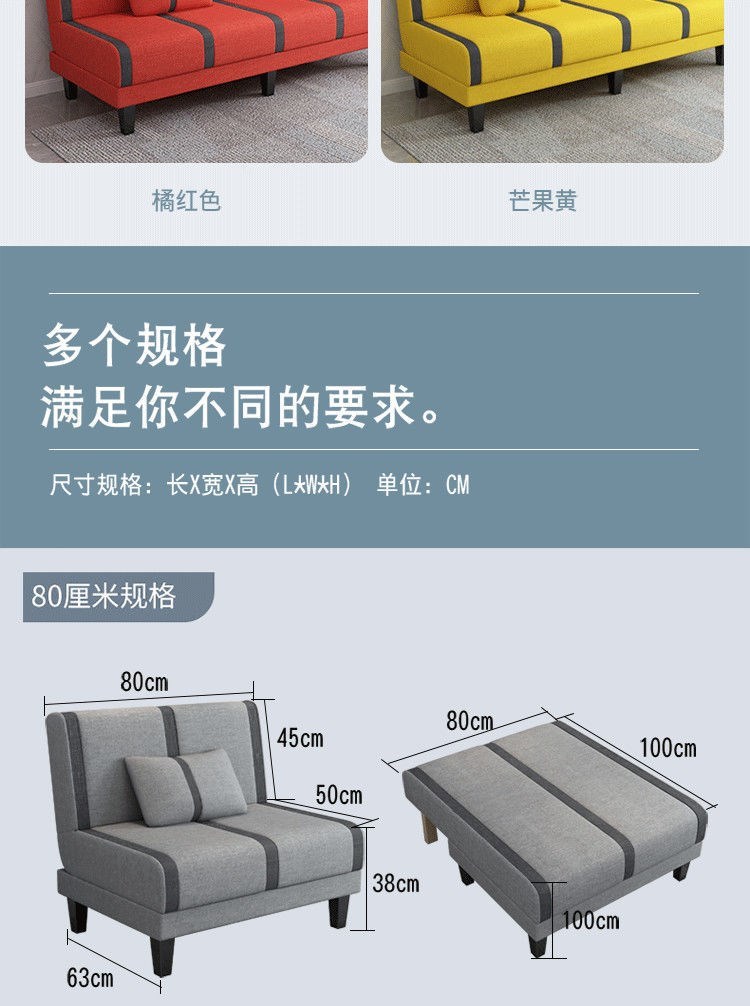 소형 아파트 임대 거실 및 침실을 위한 간단한 소파 다기능 싱글 및 더블 접이식 소파 베드 이중 용도 mm^