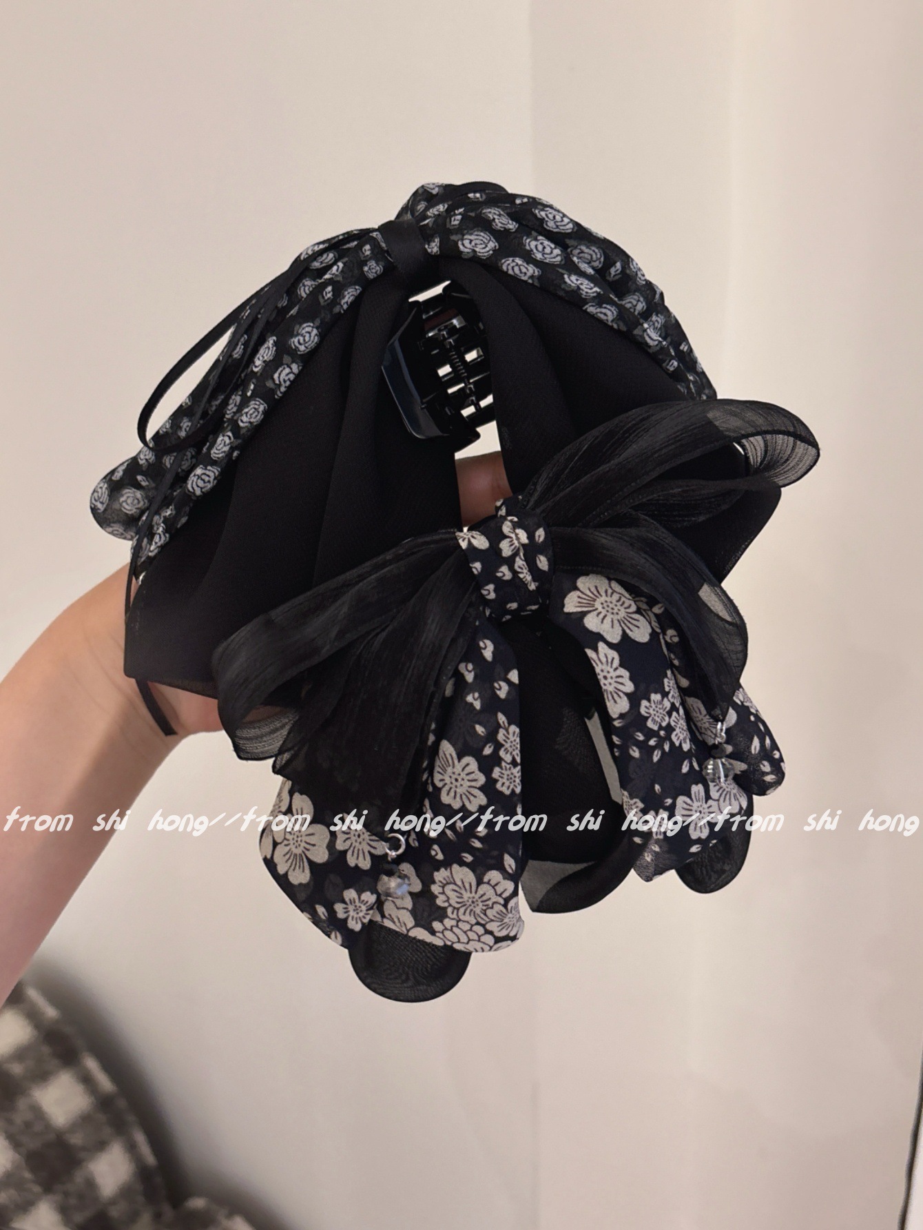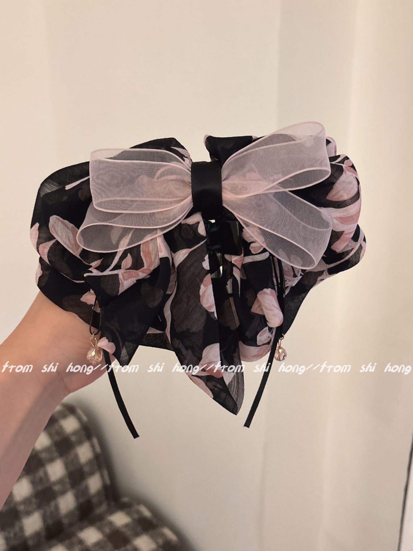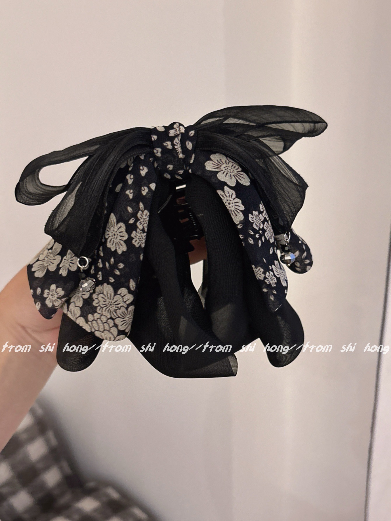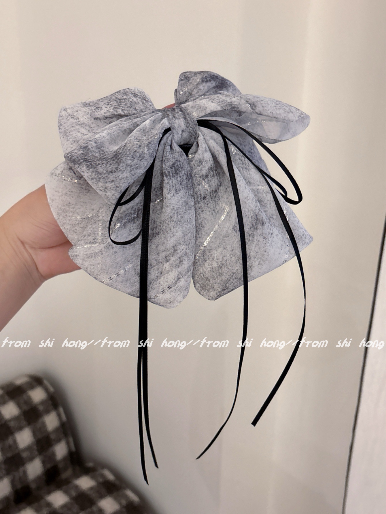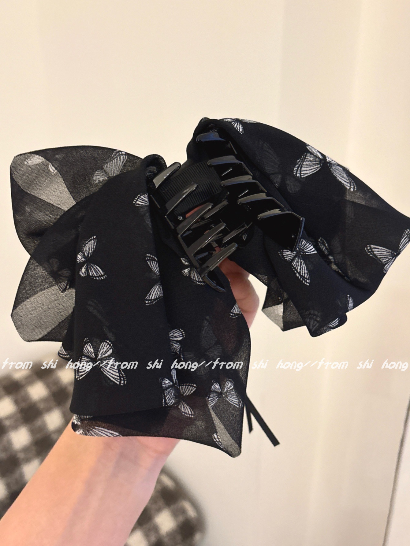 여성용 잉크 프린트 클립, 가벼운 거즈 리본, 상어 클립, 틈새 디자인, 고급 헤어 포니테일 클립, 신제품스토어 가기