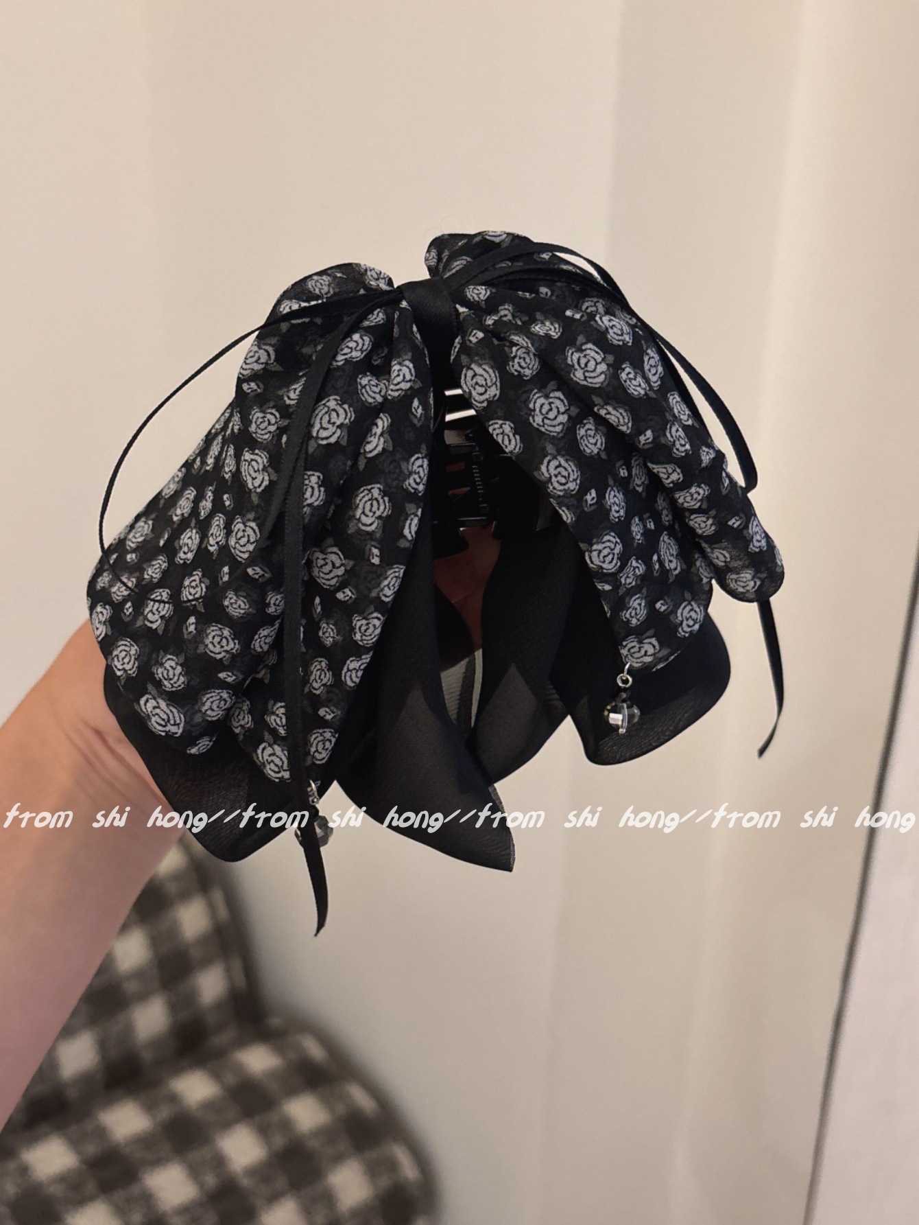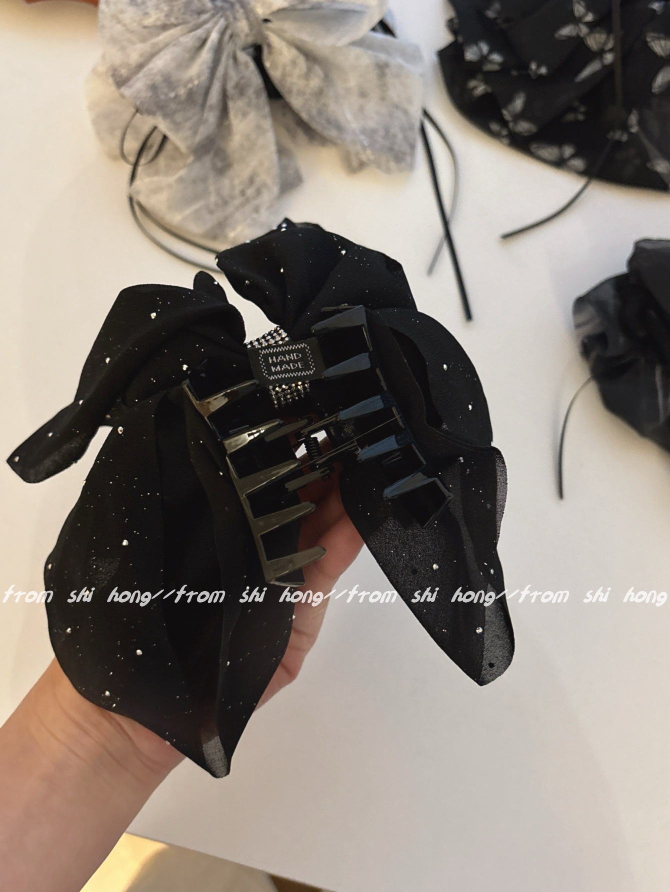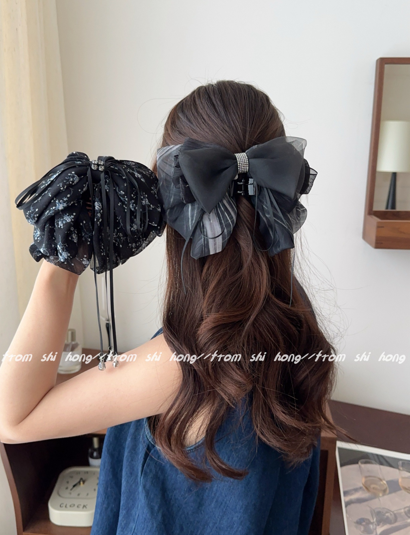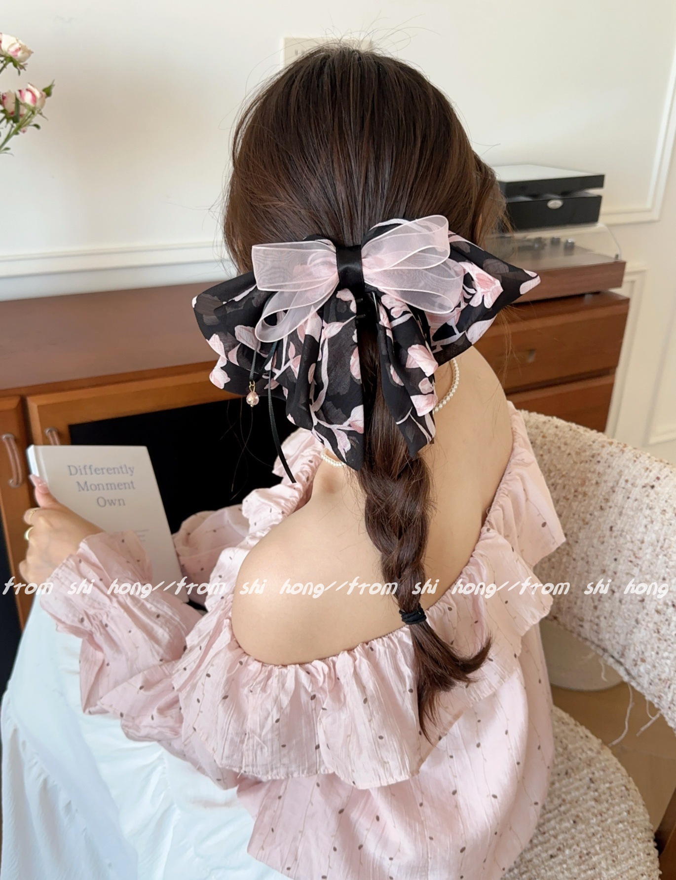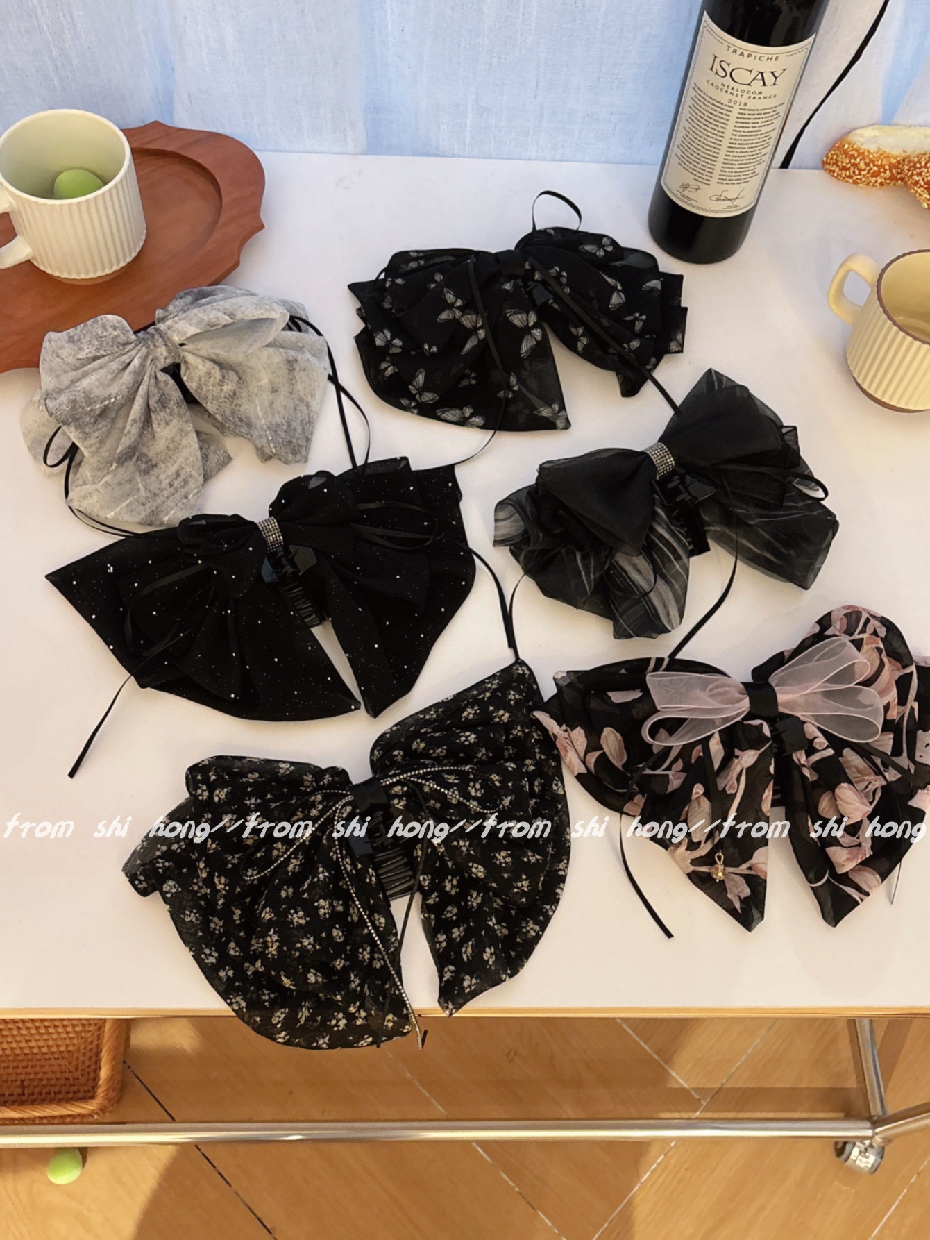 여성용 잉크 프린트 클립, 가벼운 거즈 리본, 상어 클립, 틈새 디자인, 고급 헤어 포니테일 클립, 신제품스토어 가기