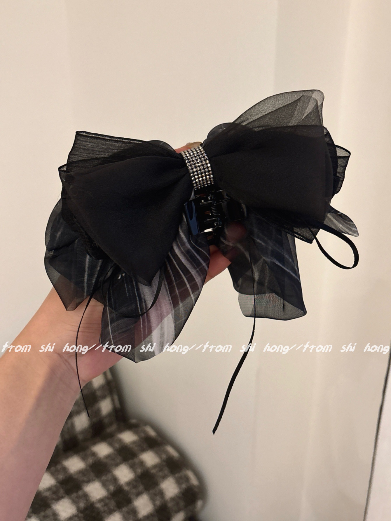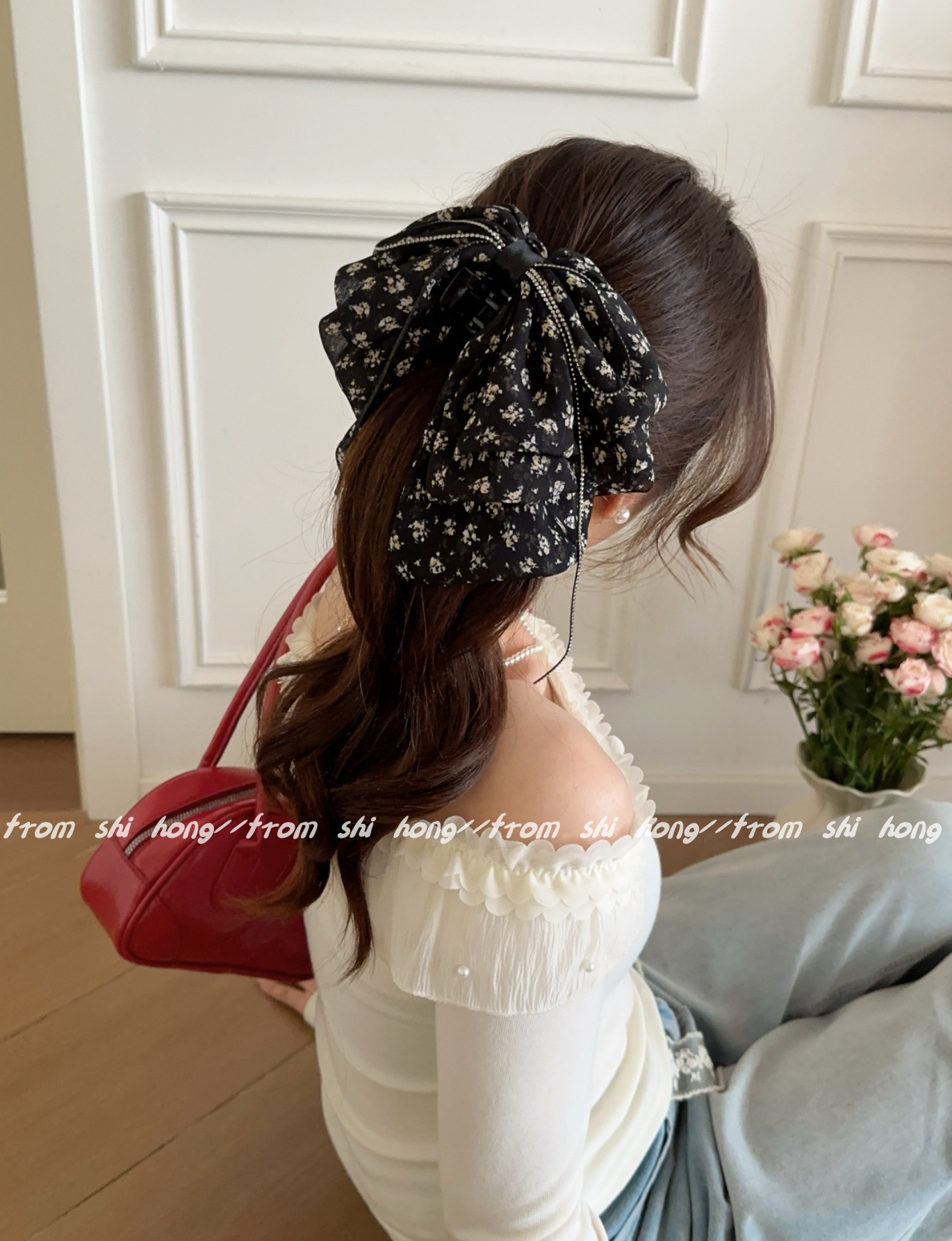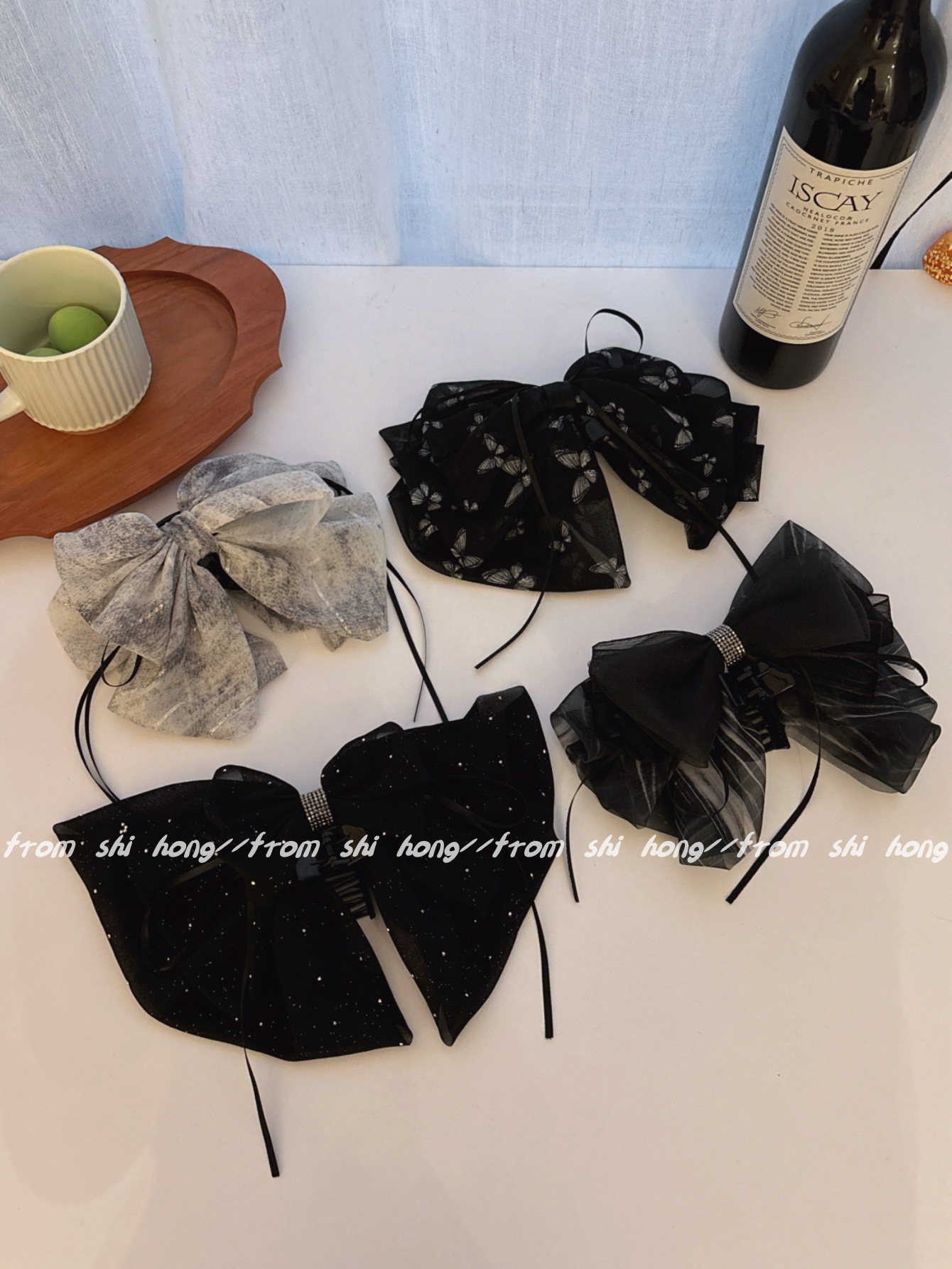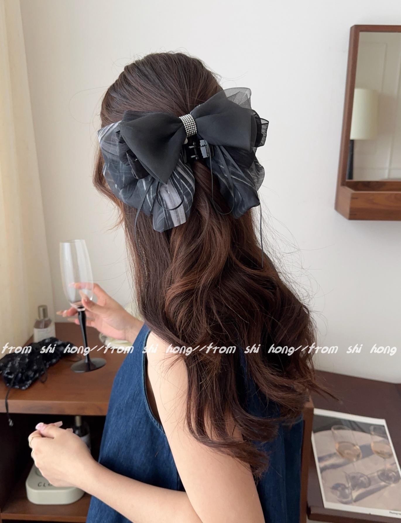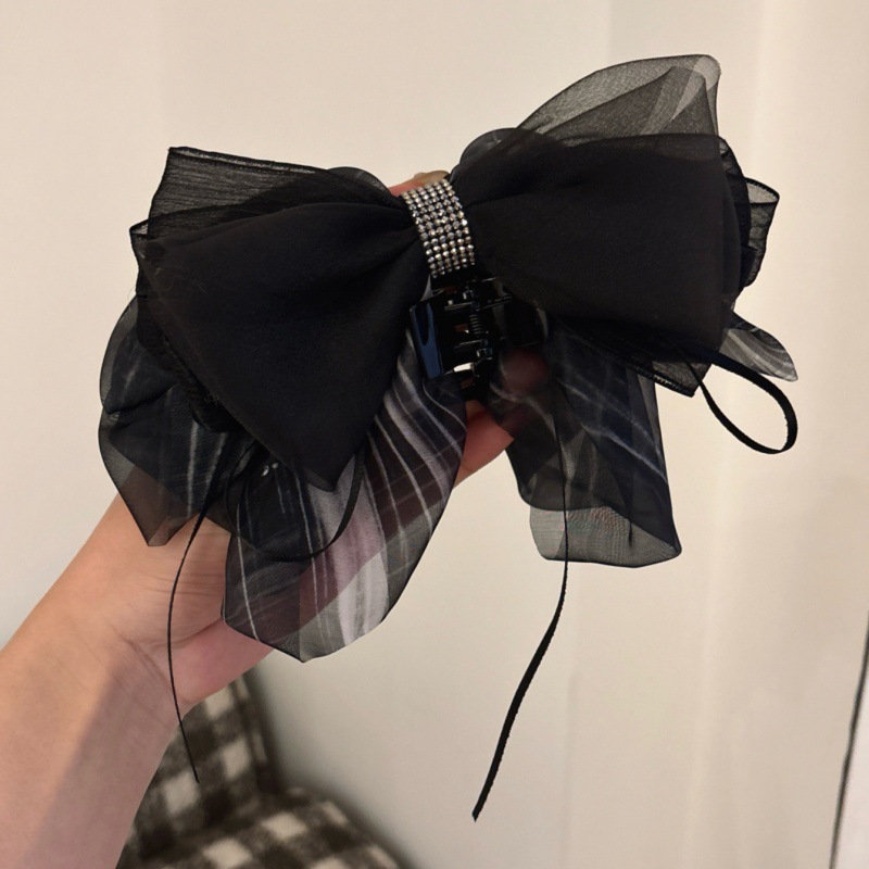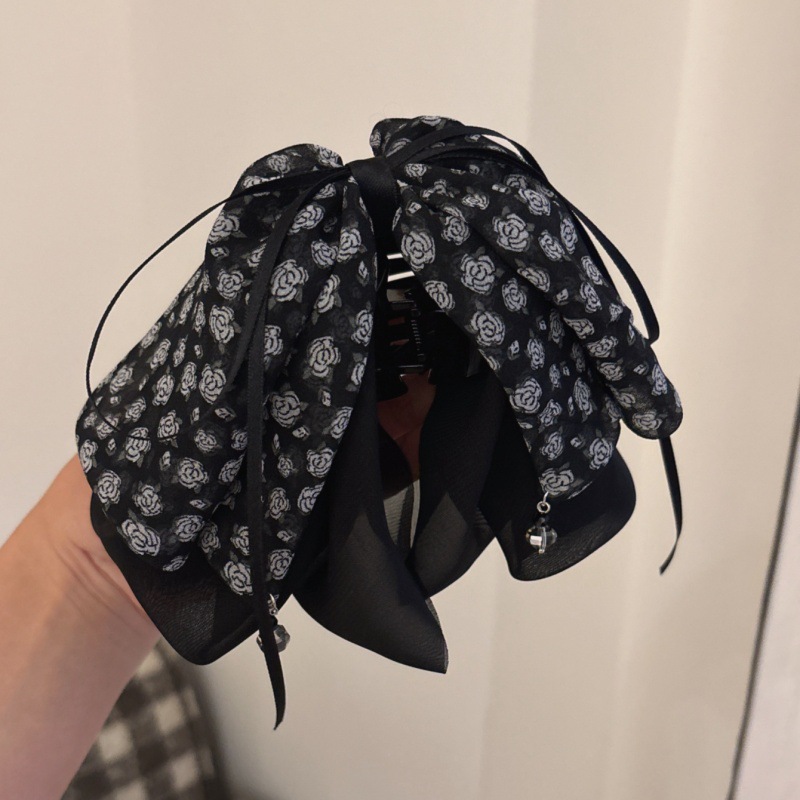 여성용 잉크 프린트 클립, 가벼운 거즈 리본, 상어 클립, 틈새 디자인, 고급 헤어 포니테일 클립, 신제품스토어 가기