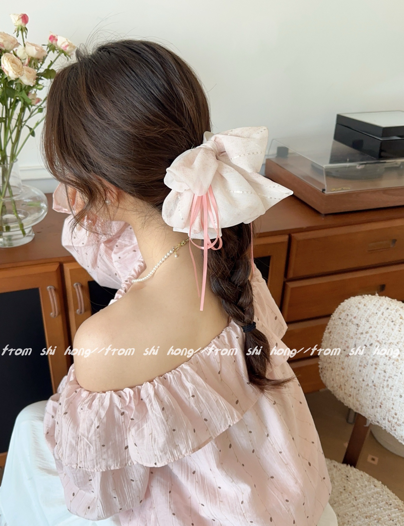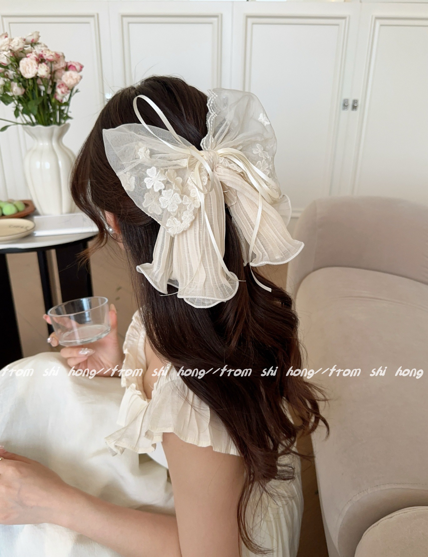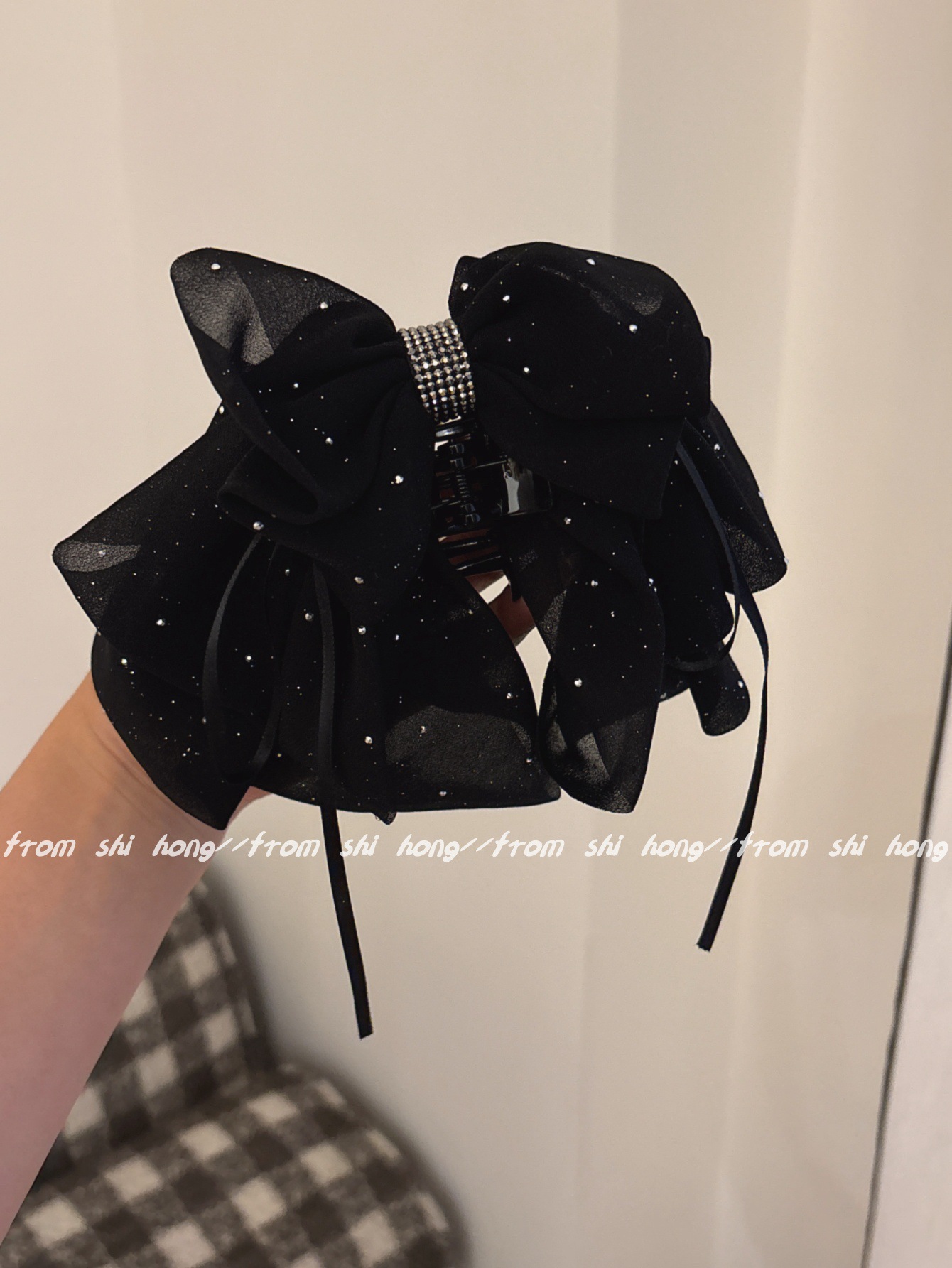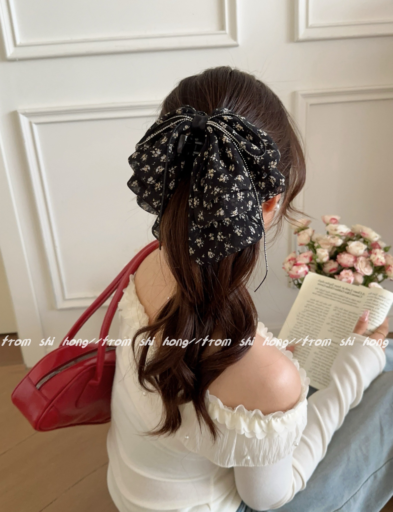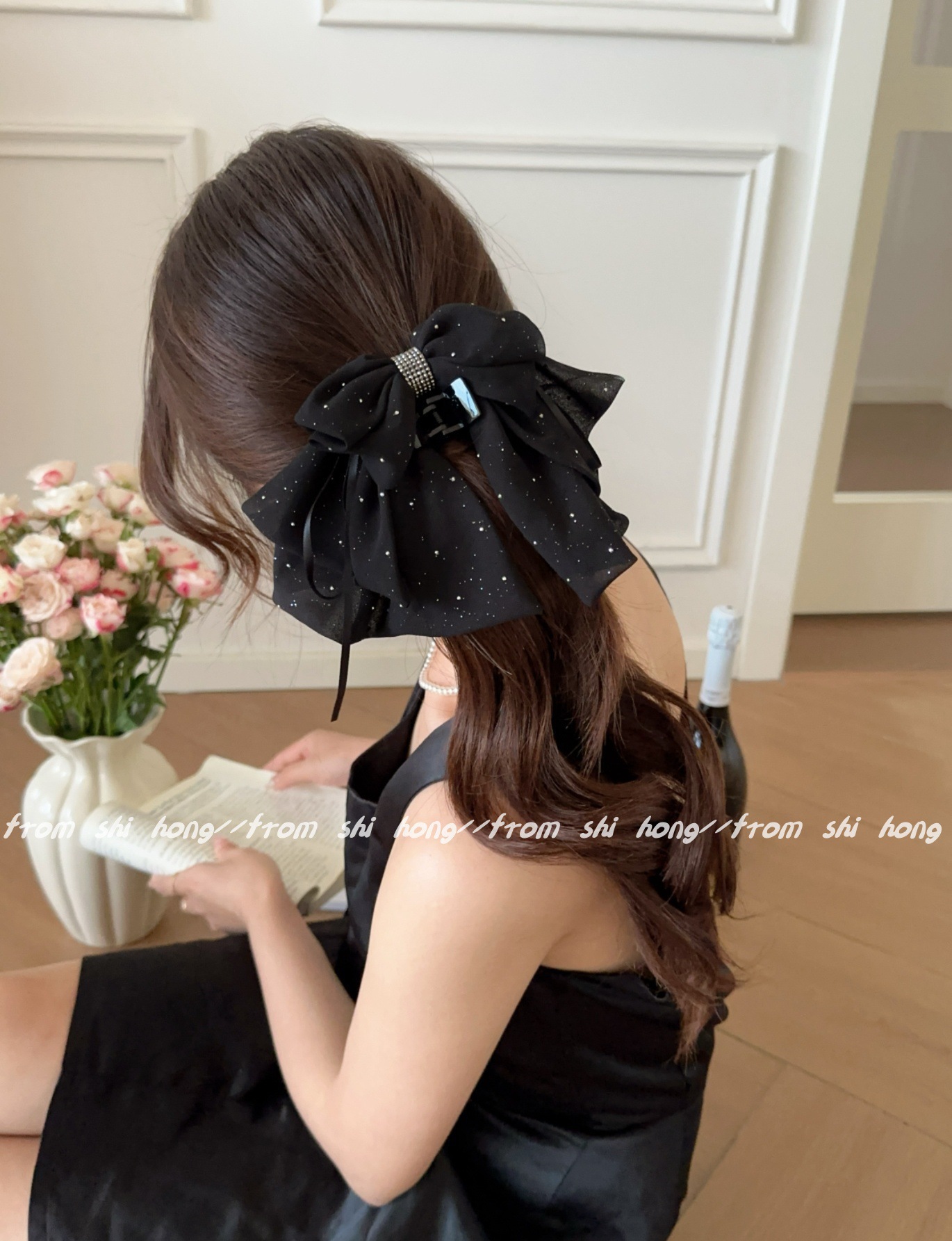 여성용 잉크 프린트 클립, 가벼운 거즈 리본, 상어 클립, 틈새 디자인, 고급 헤어 포니테일 클립, 신제품스토어 가기