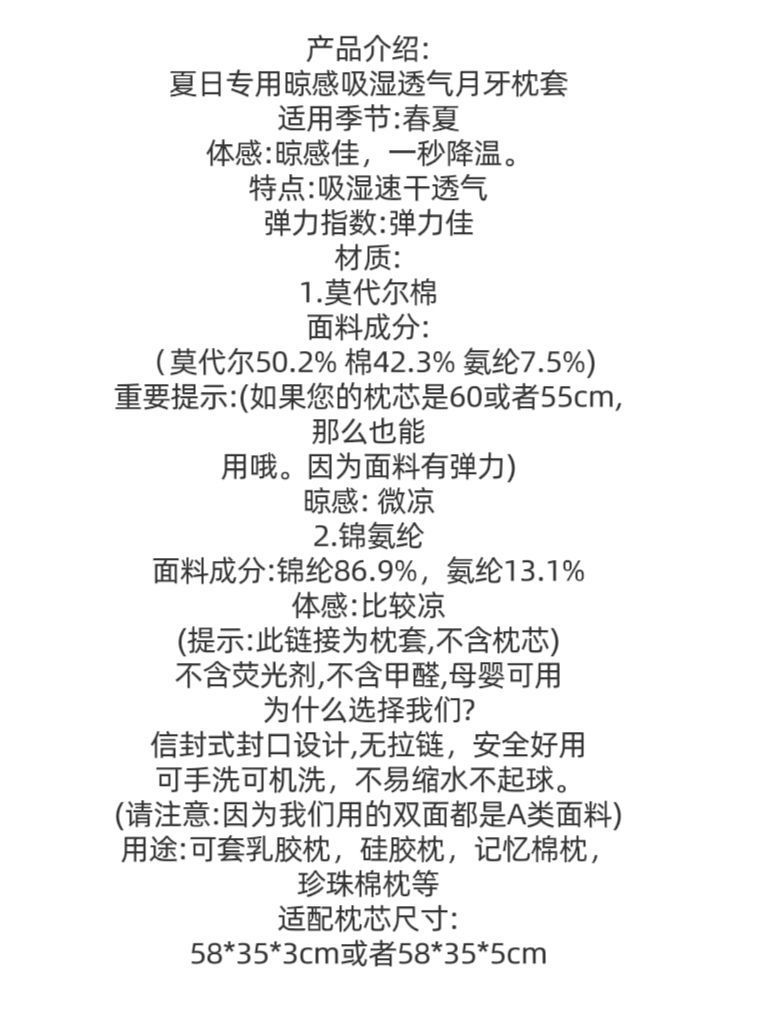 여름 건조감, 흡습속건, 나일론 스판덱스, 모달면 초승달베개커버, 어린이 수면공식에 적합한 베개커버