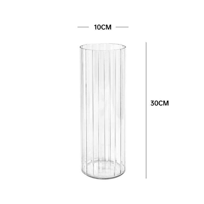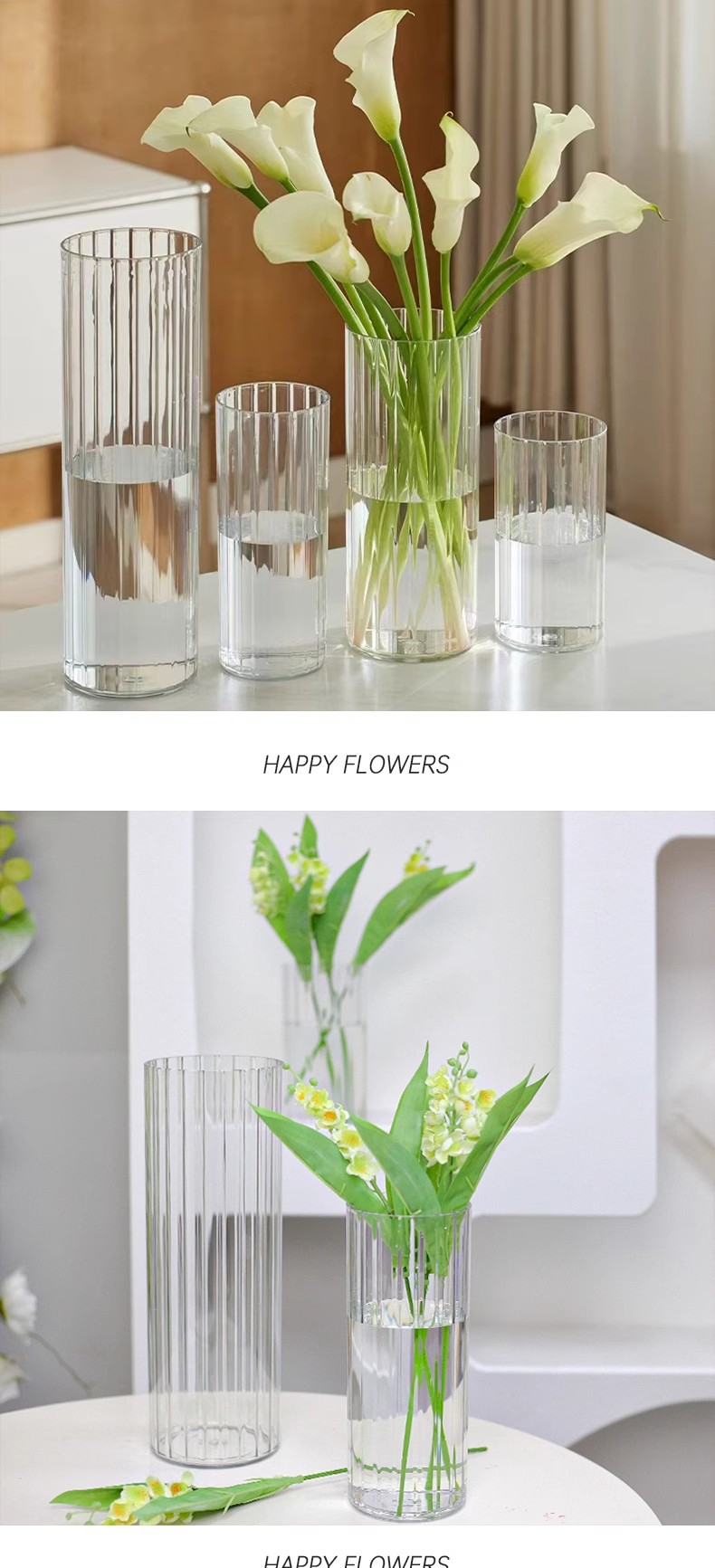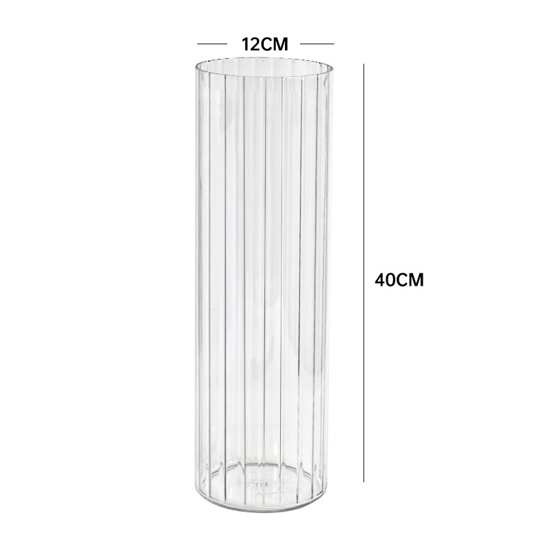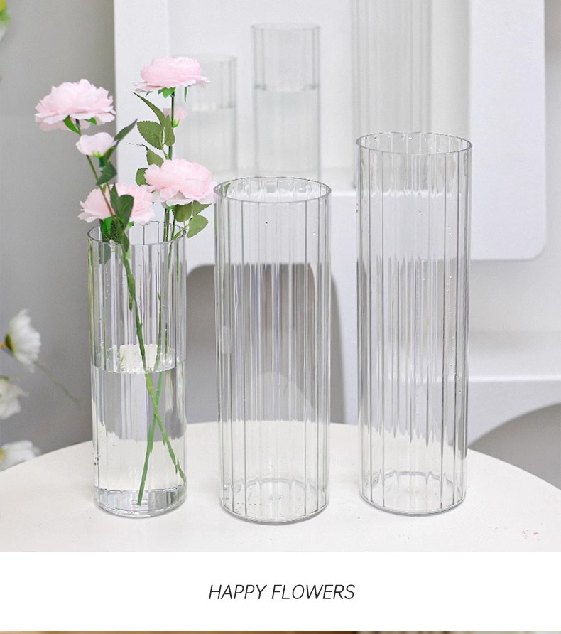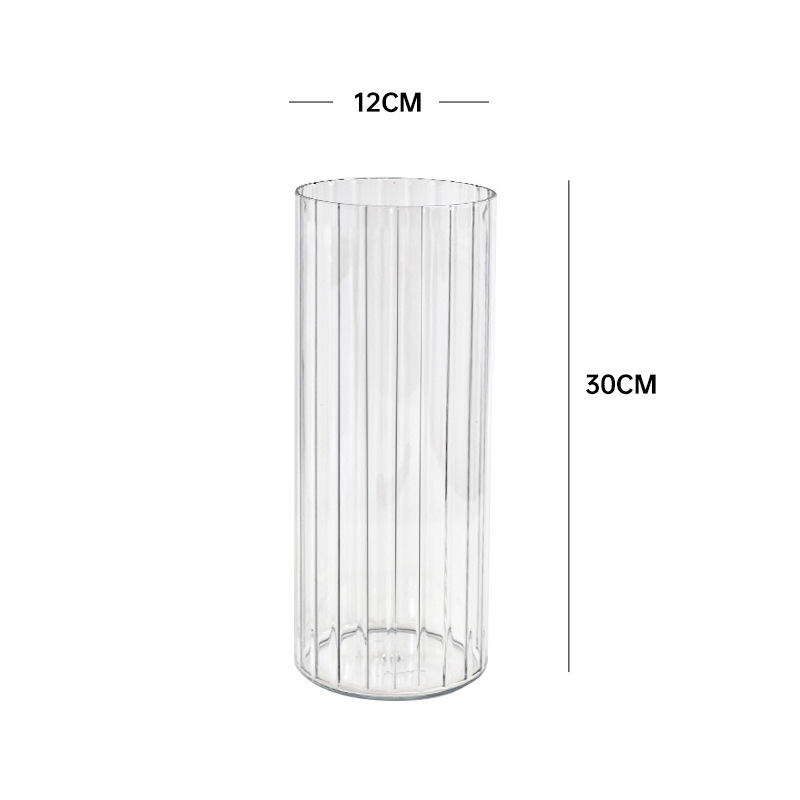 줄무늬 아크릴 크리 에이 티브 투명 세로 줄무늬 스트레이트 꽃병 간단한 PC 꽃 양동이 거실 식탁 장식 물 배양