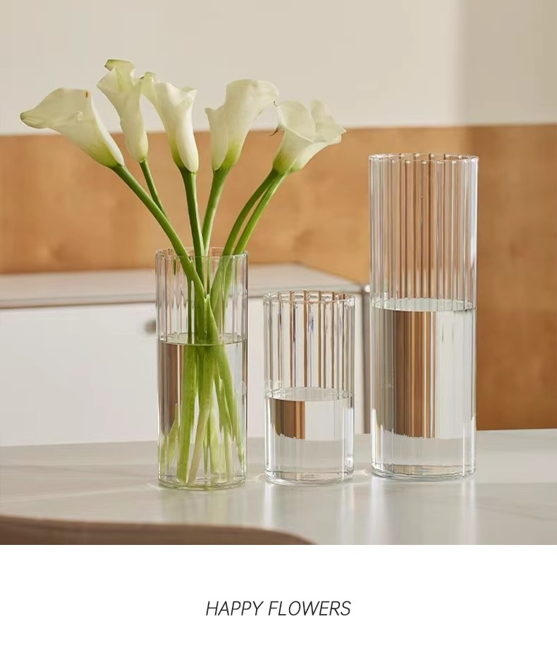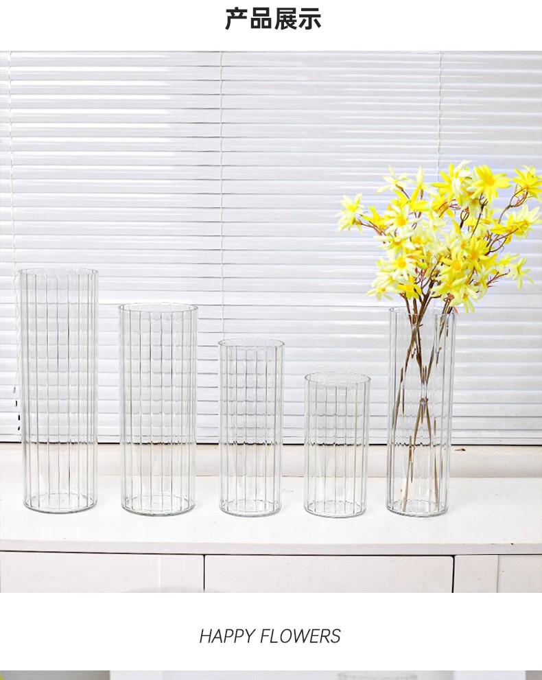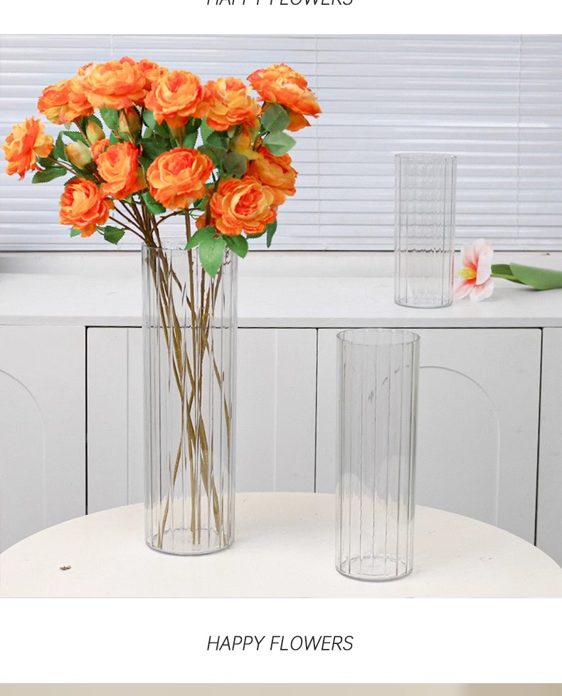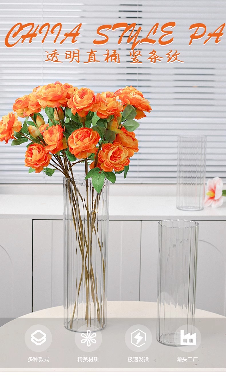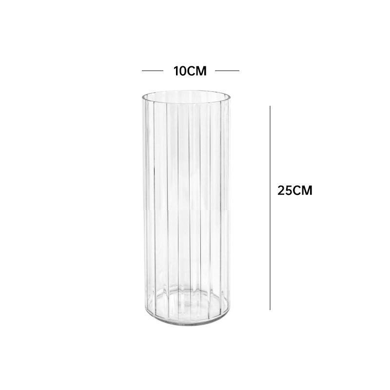줄무늬 아크릴 크리 에이 티브 투명 세로 줄무늬 스트레이트 꽃병 간단한 PC 꽃 양동이 거실 식탁 장식 물 배양