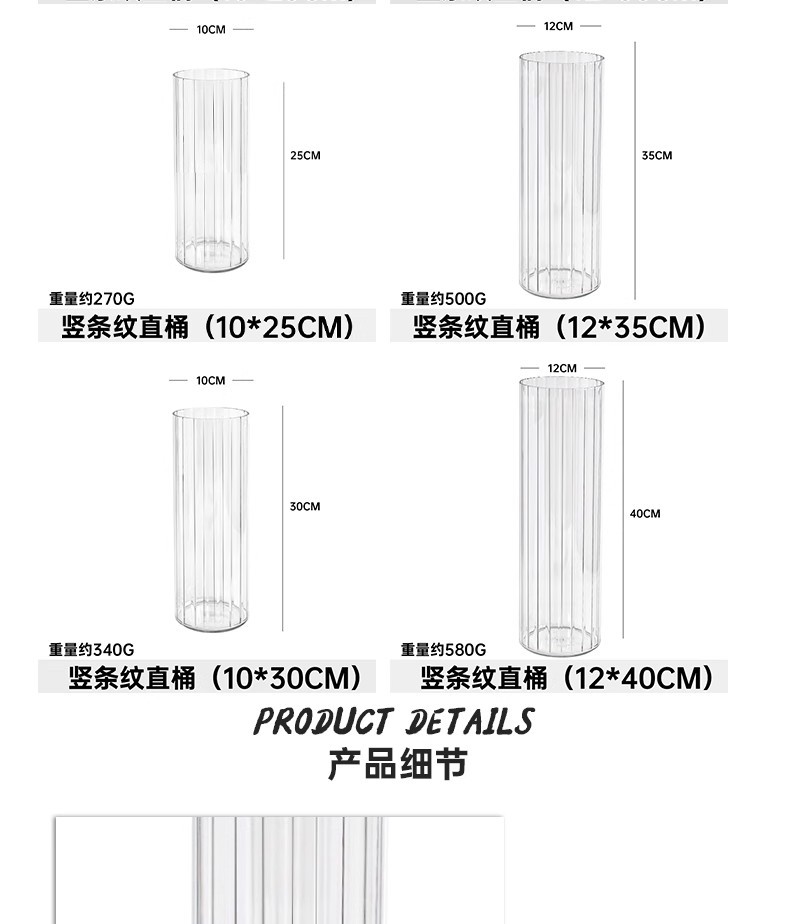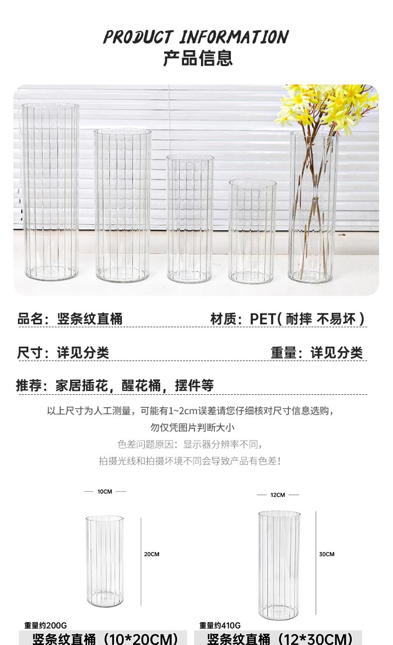 줄무늬 아크릴 크리 에이 티브 투명 세로 줄무늬 스트레이트 꽃병 간단한 PC 꽃 양동이 거실 식탁 장식 물 배양스토어 가기