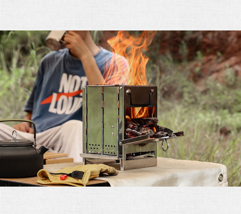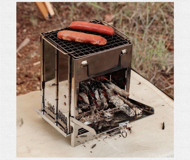 야외 접이식 우드 스토브 미니 스테인레스 스틸 오븐 BBQ 캠핑 피크닉 접이식 숯 스토브 야외 그릴스토어 가기