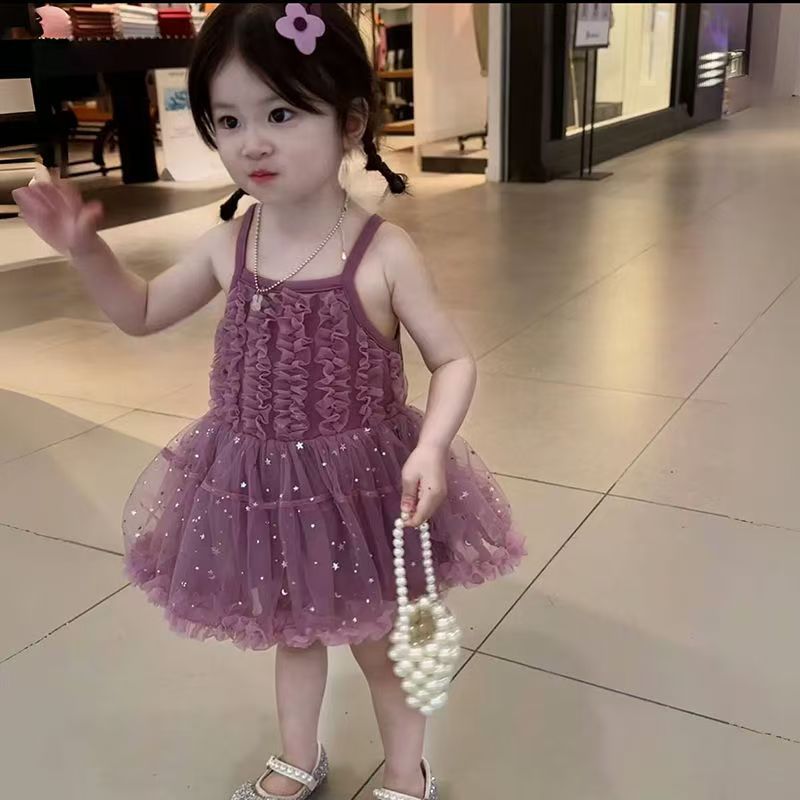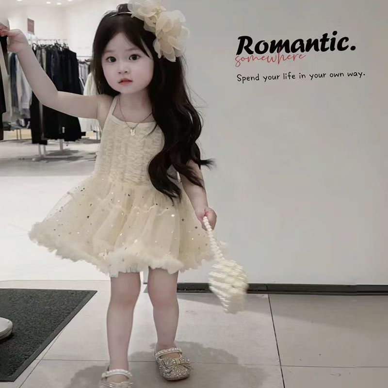 2025 여아 서스펜더 스타 앤 문 거즈 스커트