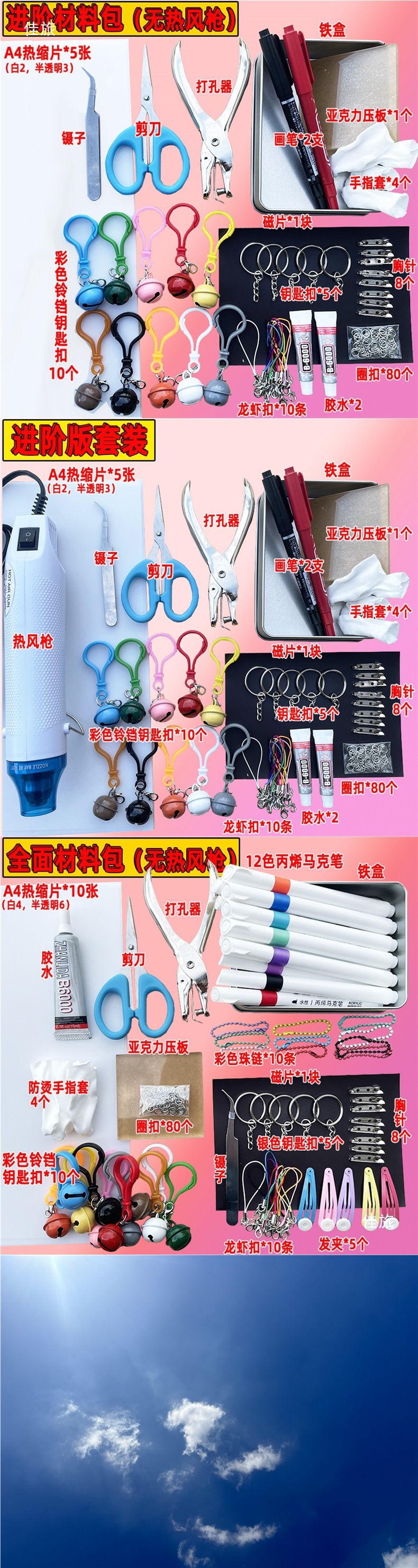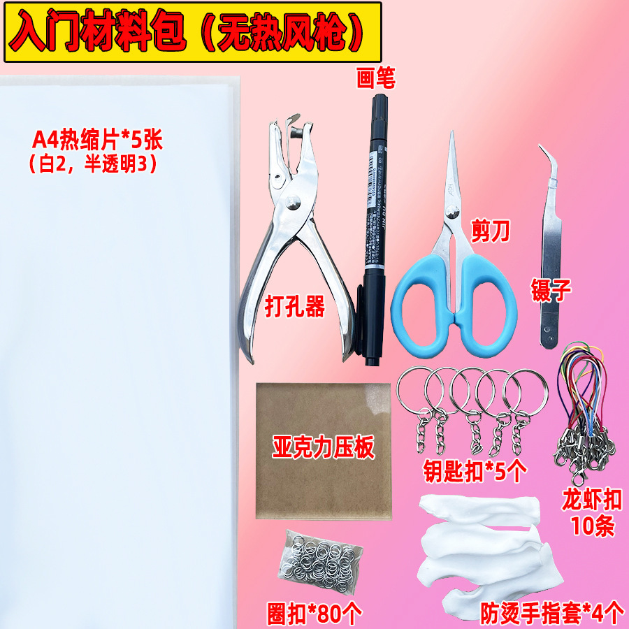 수제 diy 열 수축 시트 재료 패키지 세트 열 가소성 키 체인 브로치 머리핀 열 수축 시트 쥬얼리 도구 세트스토어 가기
