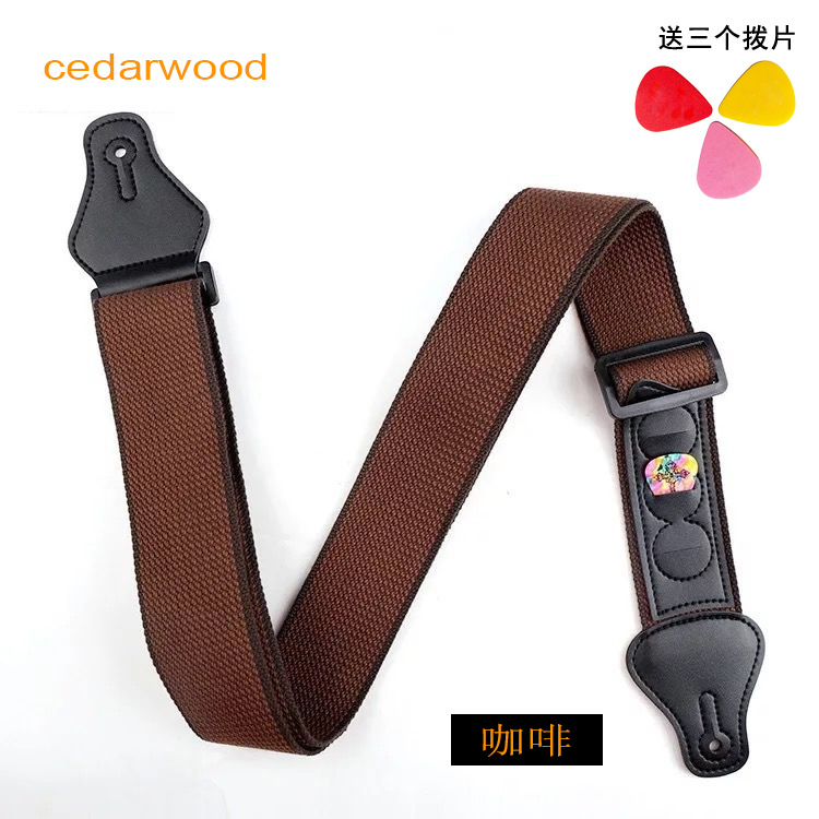 • 면 및 린넨 기타 스트랩 [브라운] (픽 3개 포함)