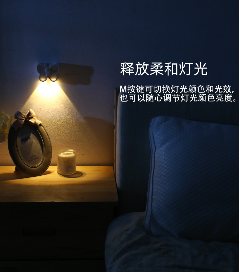 나비 인간 유도 나이트 라이트 USB 충전식 슈퍼 대형 내구성 펀치 무료 휴대용 야간 입구 스포트라이트