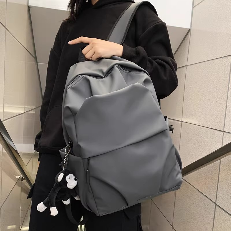 방수 나일론 천 한국 스타일 배낭 대용량 대학생 가방 남자 주름 캐주얼 여행 컴퓨터 배낭