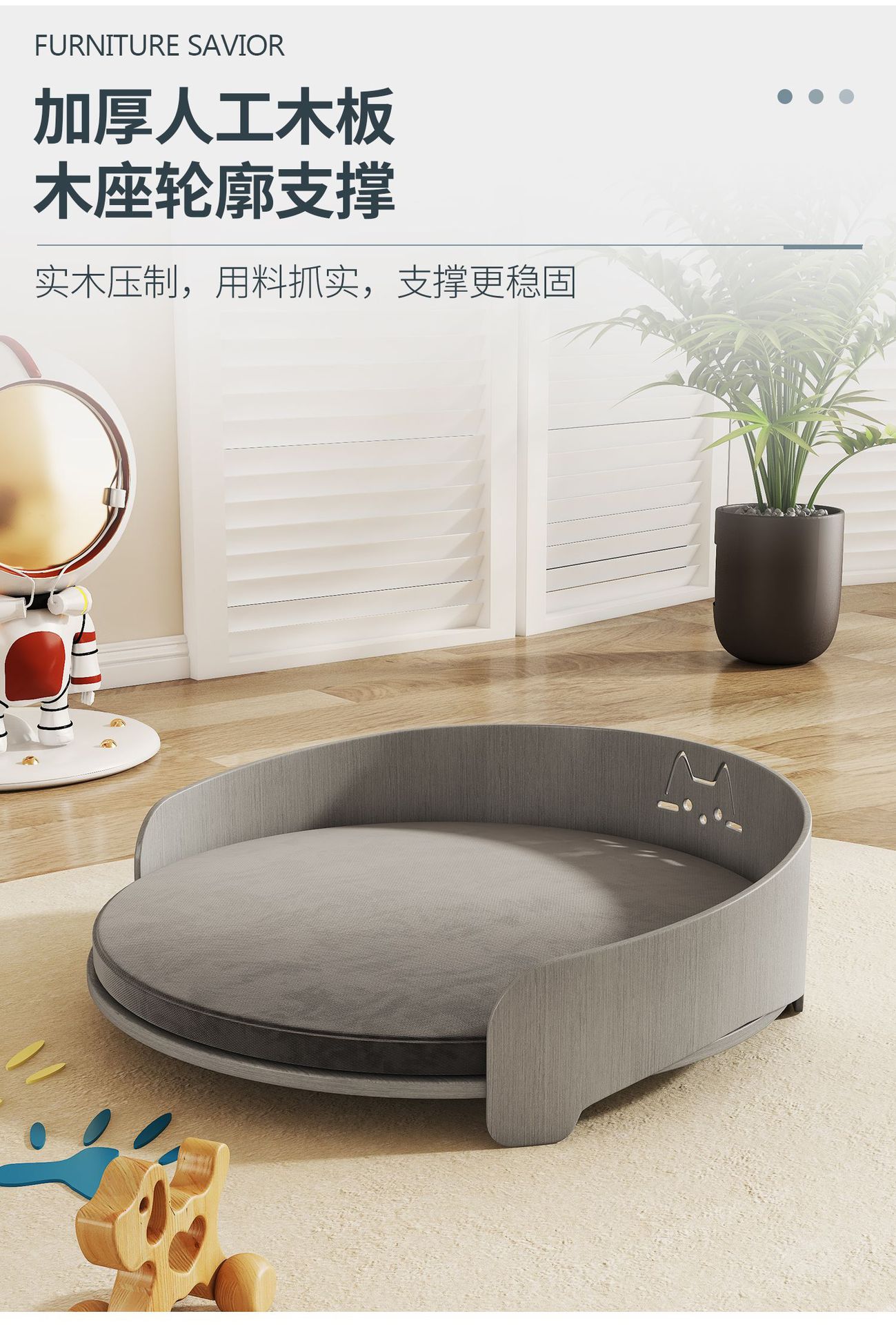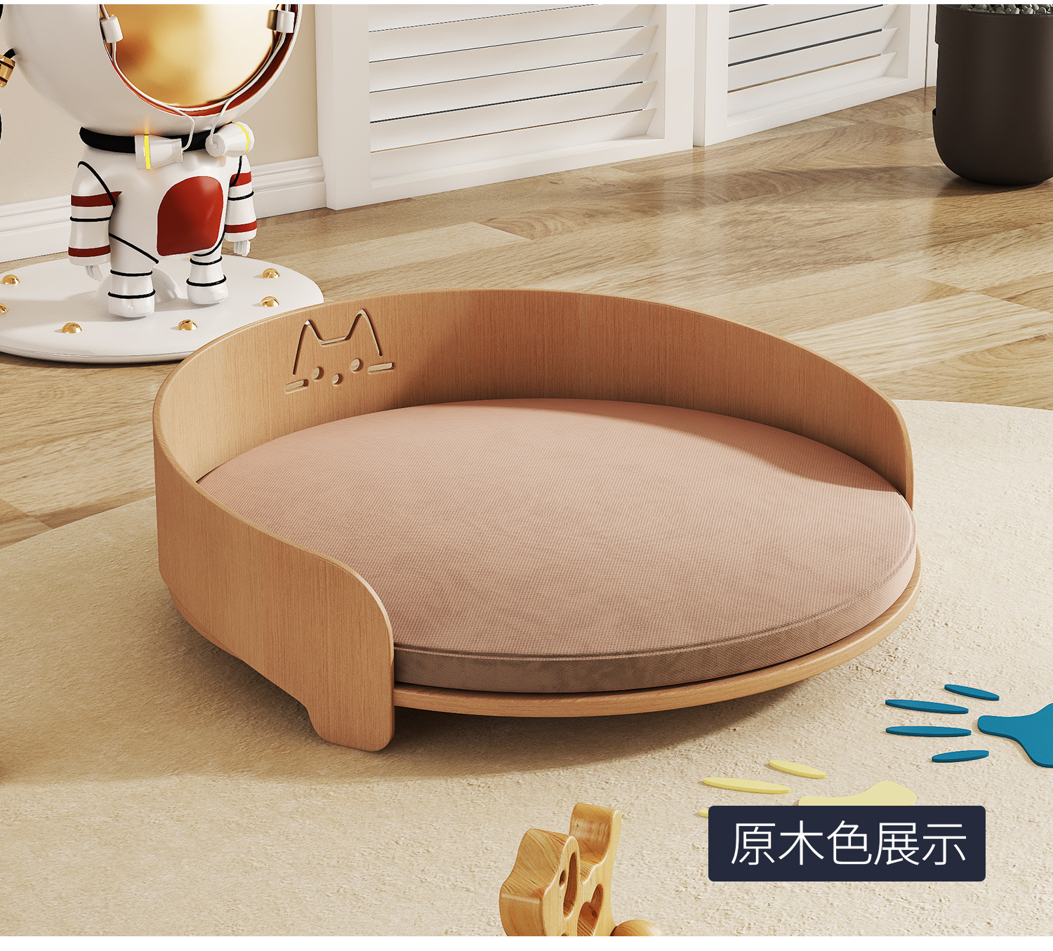원목 곡선형 개 침대 개집, 사계절 만능 고양이 개집, 고양이 침대, 여름 소형견 탈부착 및 세탁 가능한 애완동물 소파 침대스토어 가기