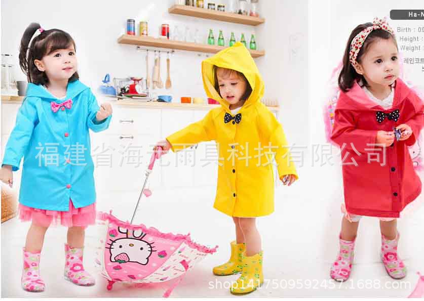 남학생과 여학생이 함께 탈 수 있는 한국식 리본 어린이 비옷, 라이딩 판초, 하이킹 방수 망토 비옷 도매스토어 가기