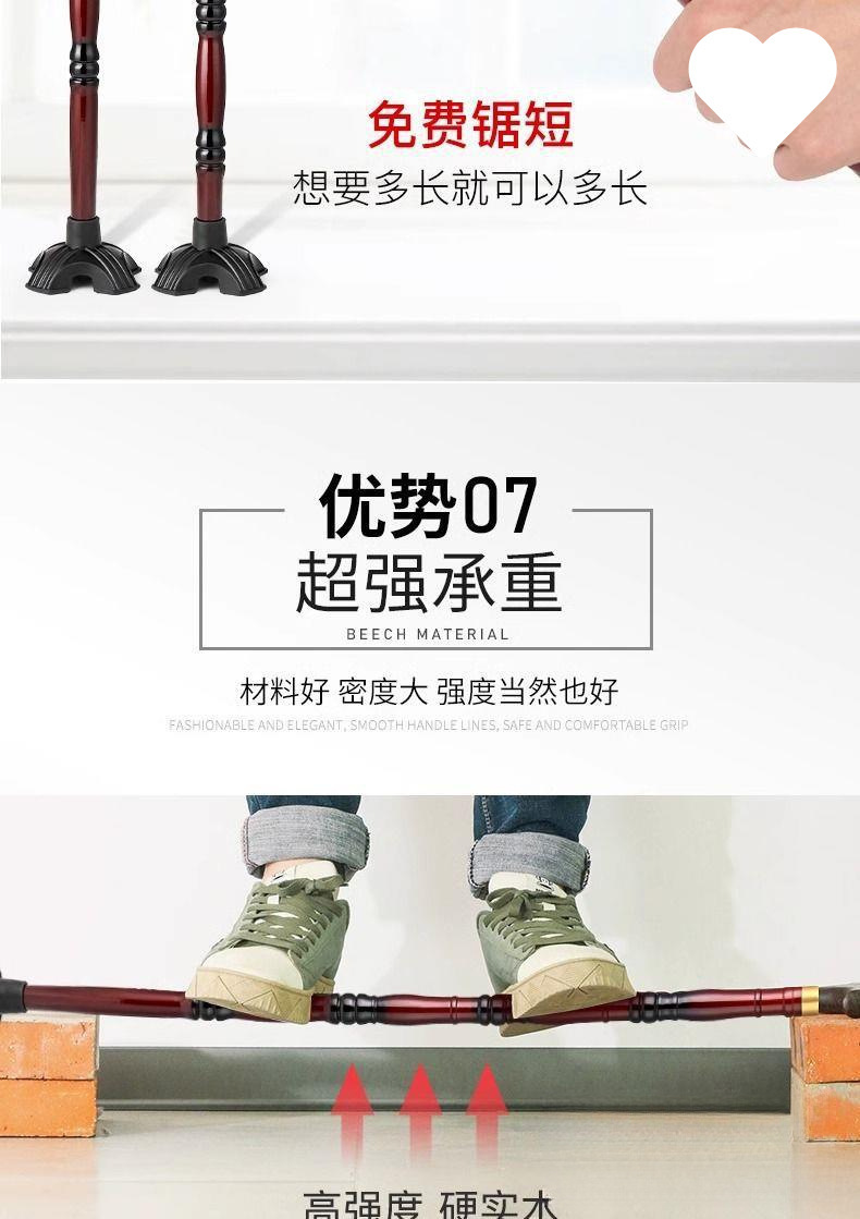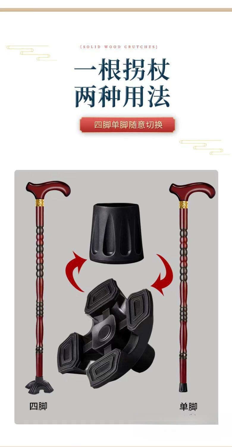 노인용 지팡이, 원목 일체형 지팡이, 나무 지팡이, 마호가니 4발 수도꼭지, 목재 경량 미끄럼 방지 등산기