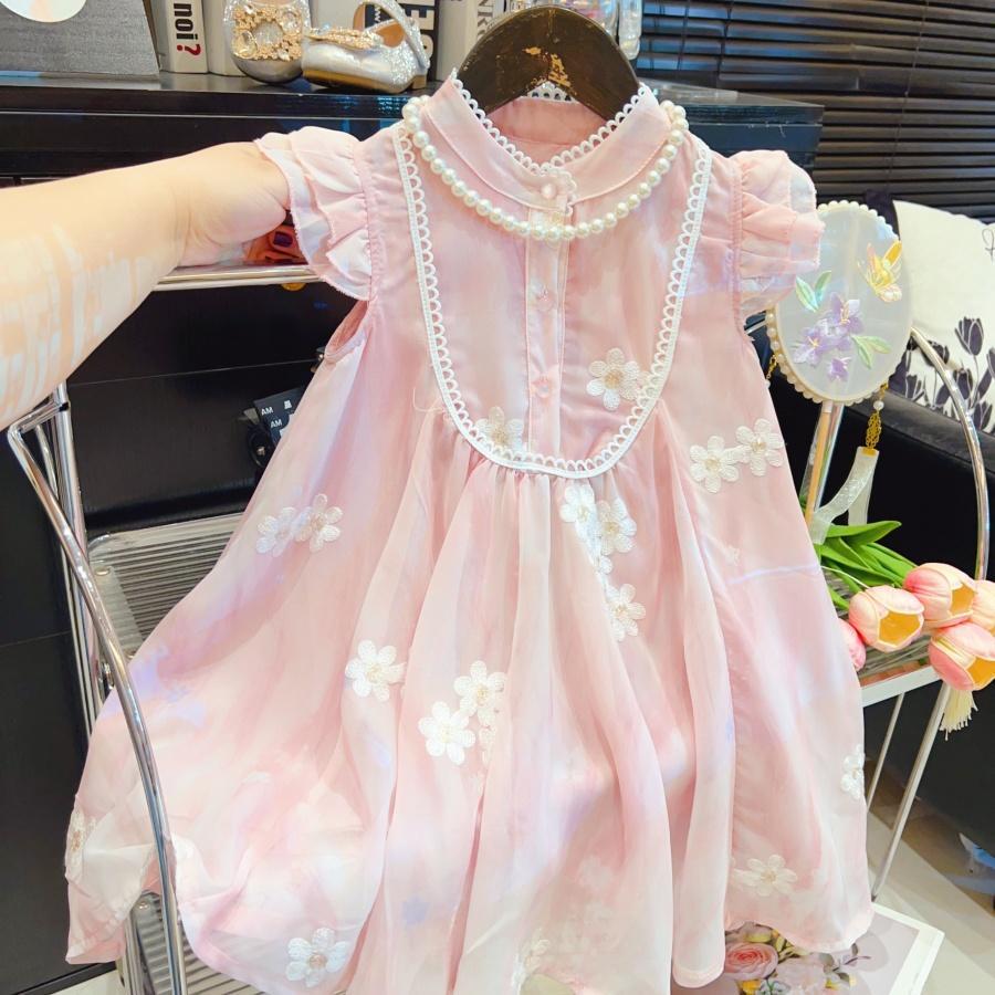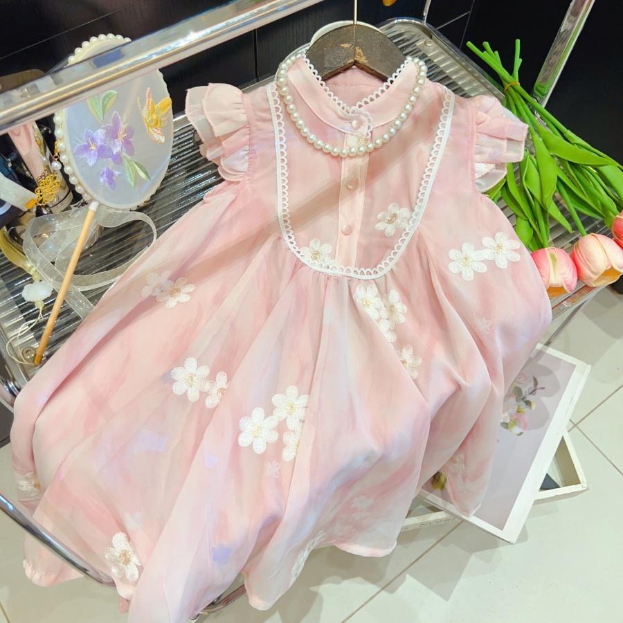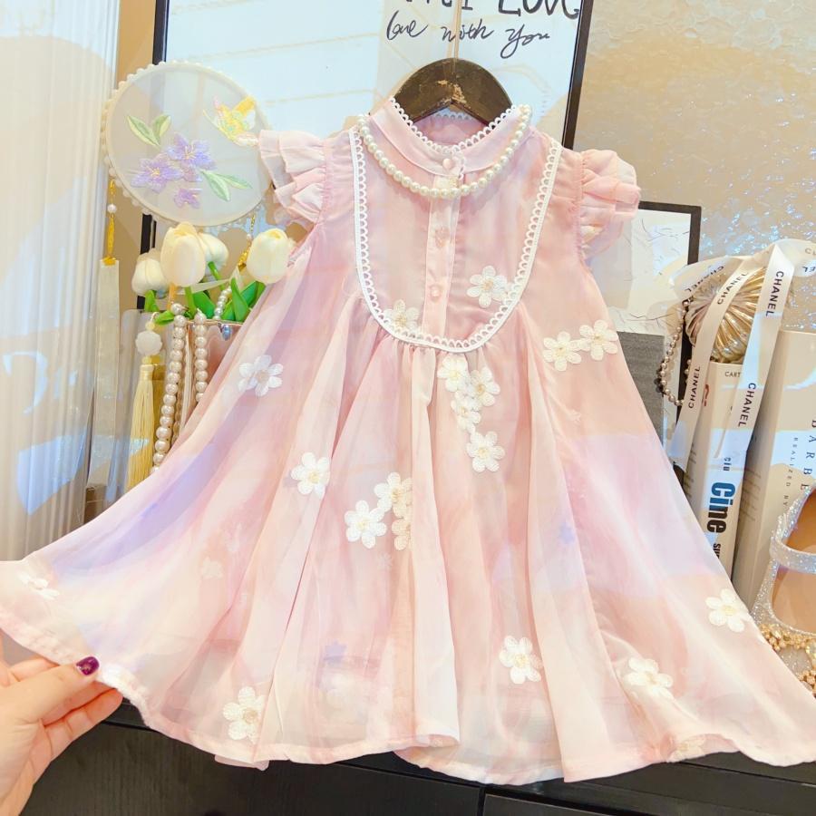 2025 여자 중국 스타일 드레스 여름 새로운 스타일의 플라잉 슬리브 메쉬 자수 드레스스토어 가기
