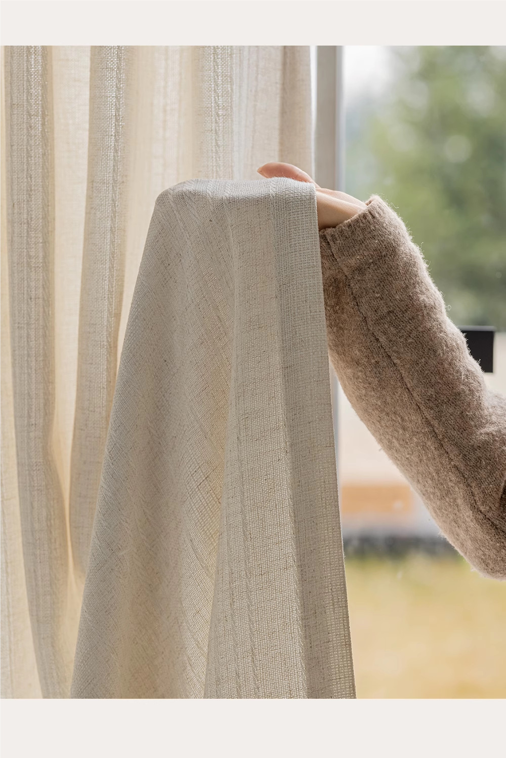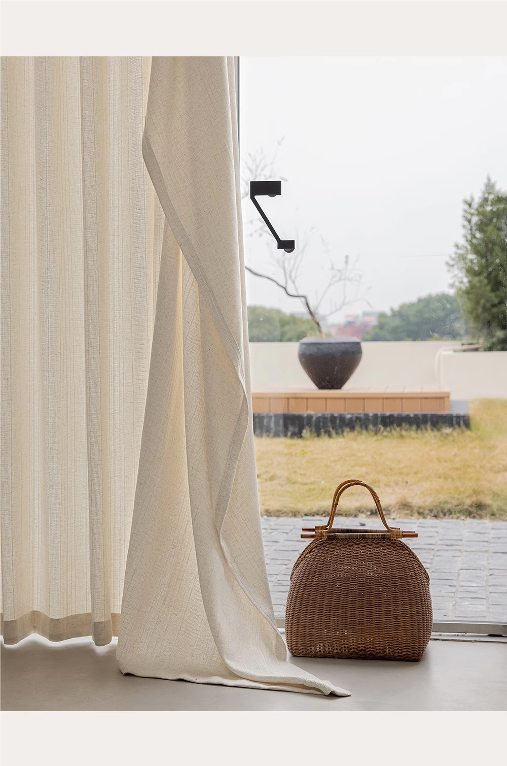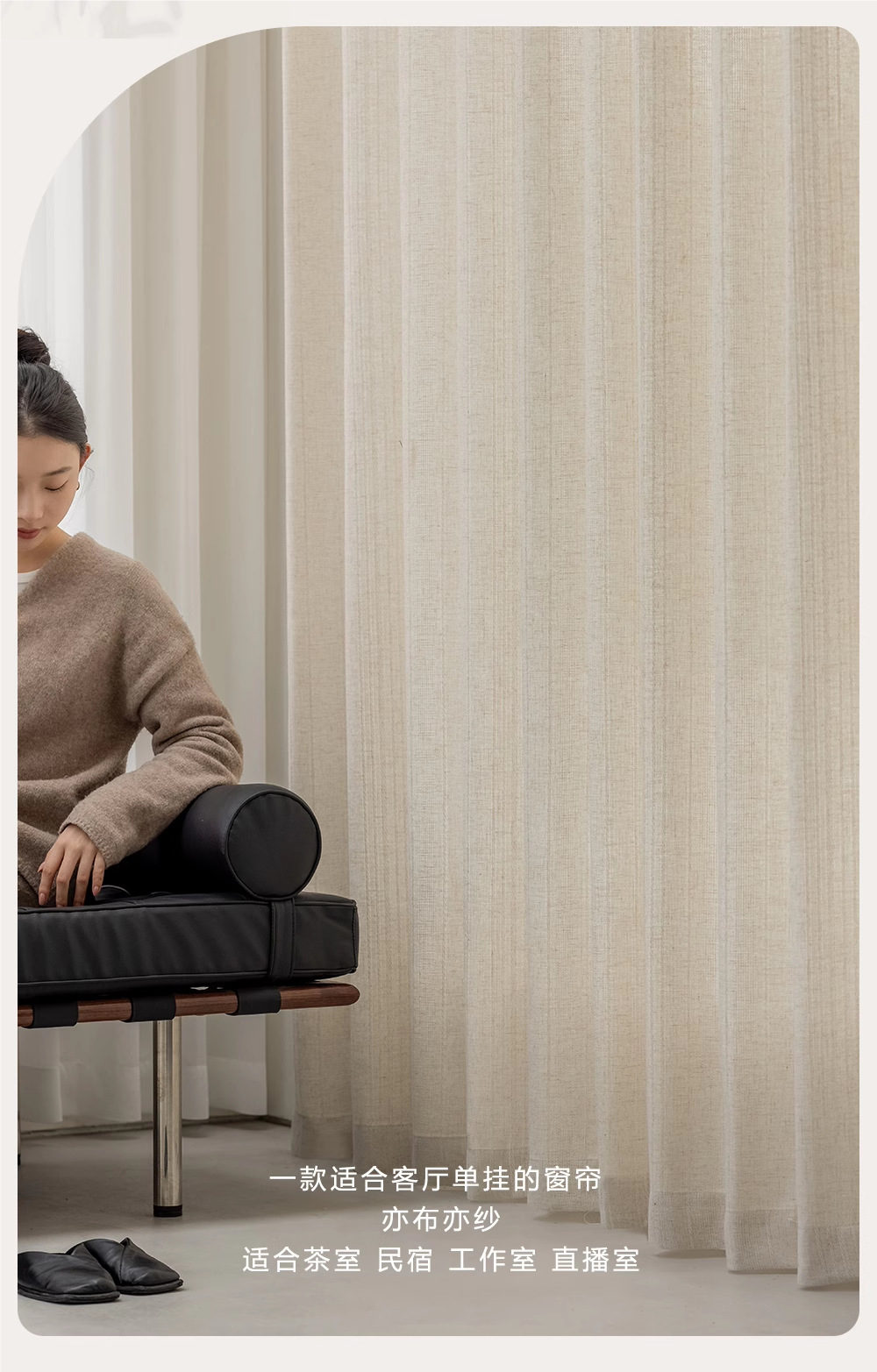 2025년 신형 일본식 원목풍 반투명 불투시 린넨 거즈 커튼 침실 거실 발코니 창문 커튼