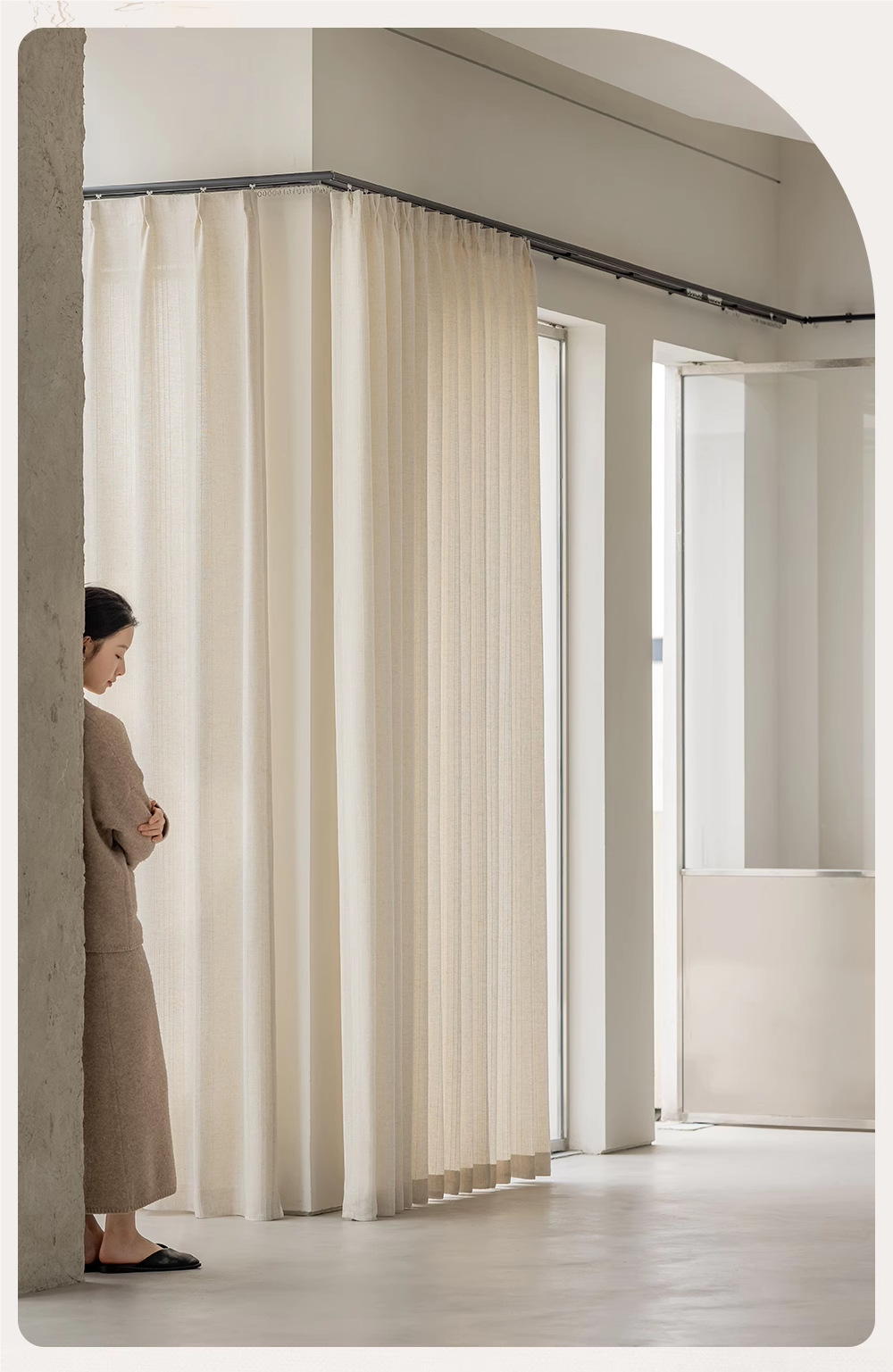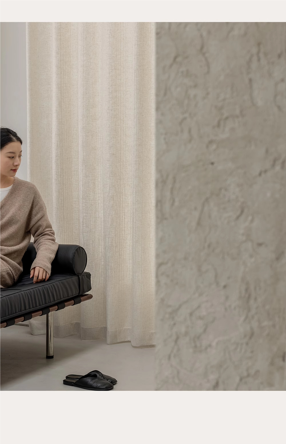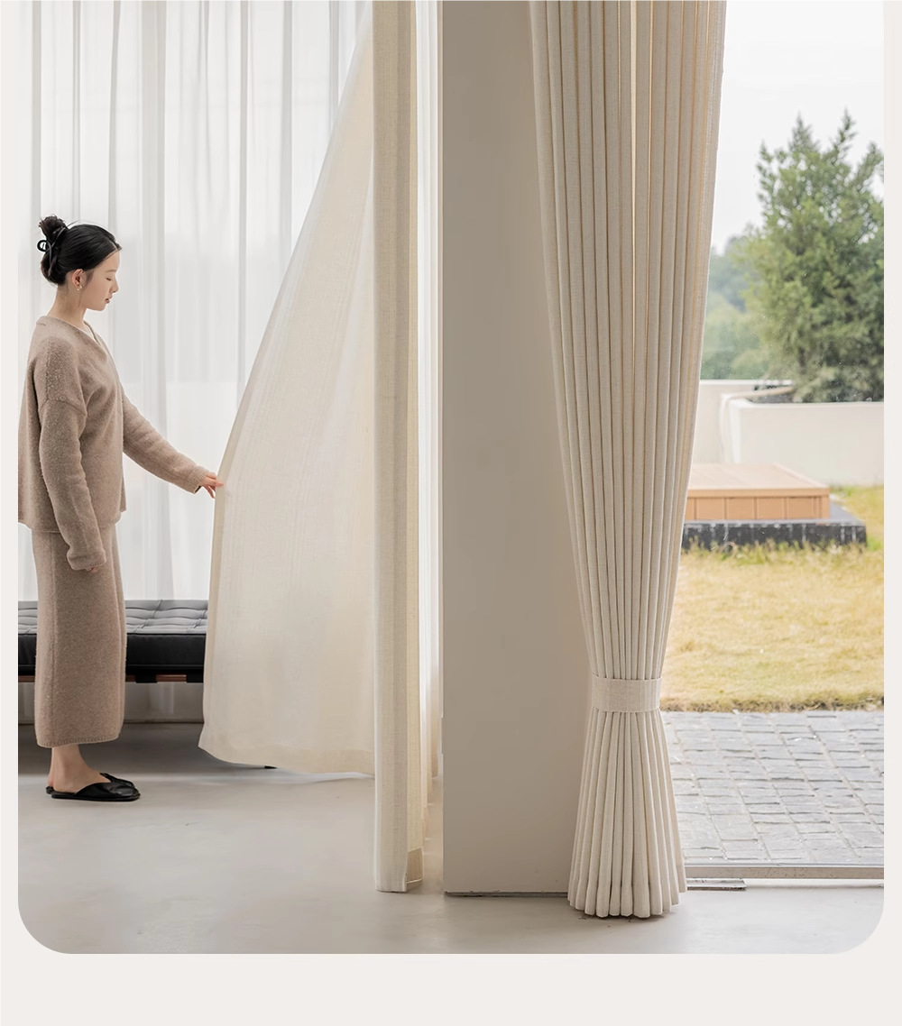 2025년 신형 일본식 원목풍 반투명 불투시 린넨 거즈 커튼 침실 거실 발코니 창문 커튼