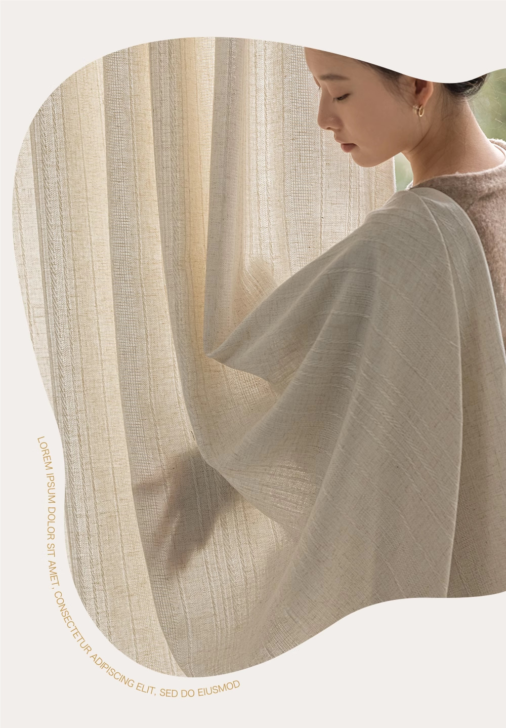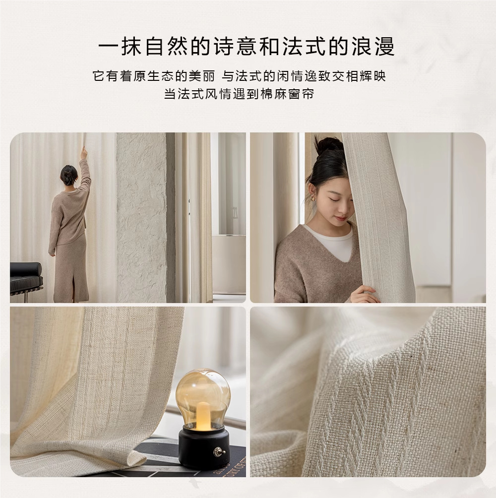 2025년 신형 일본식 원목풍 반투명 불투시 린넨 거즈 커튼 침실 거실 발코니 창문 커튼스토어 가기