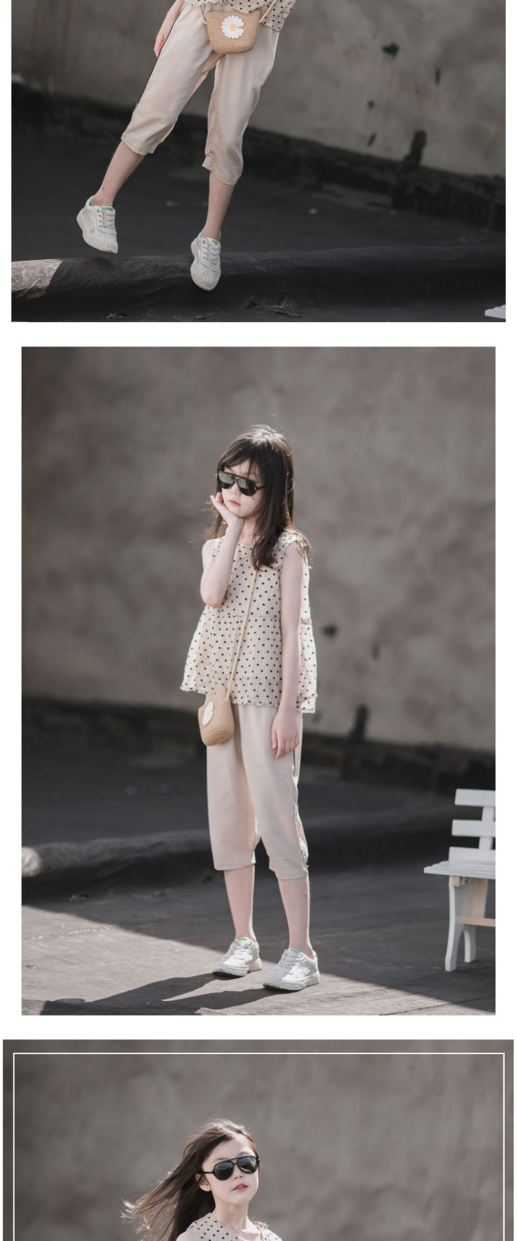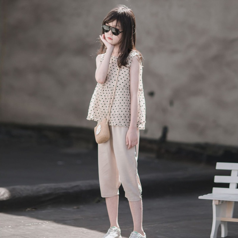 오리지널 품질 여아 여름 정장, 패셔너블한 베이비돌 셔츠, 민소매 상의, 중대형 아동용 5부 바지 투피스 세트스토어 가기