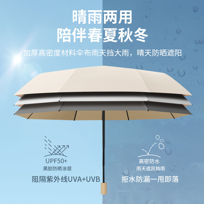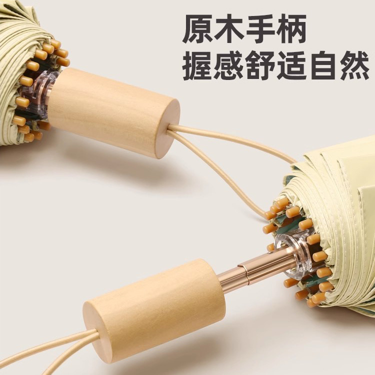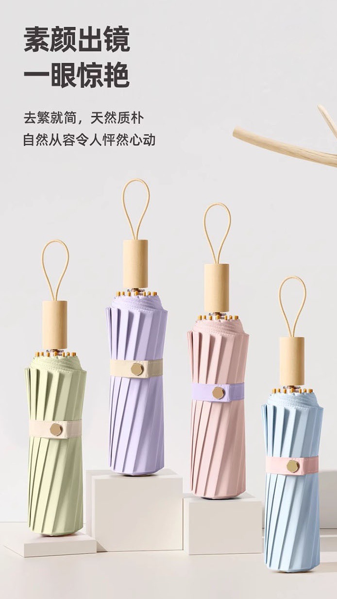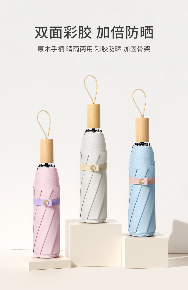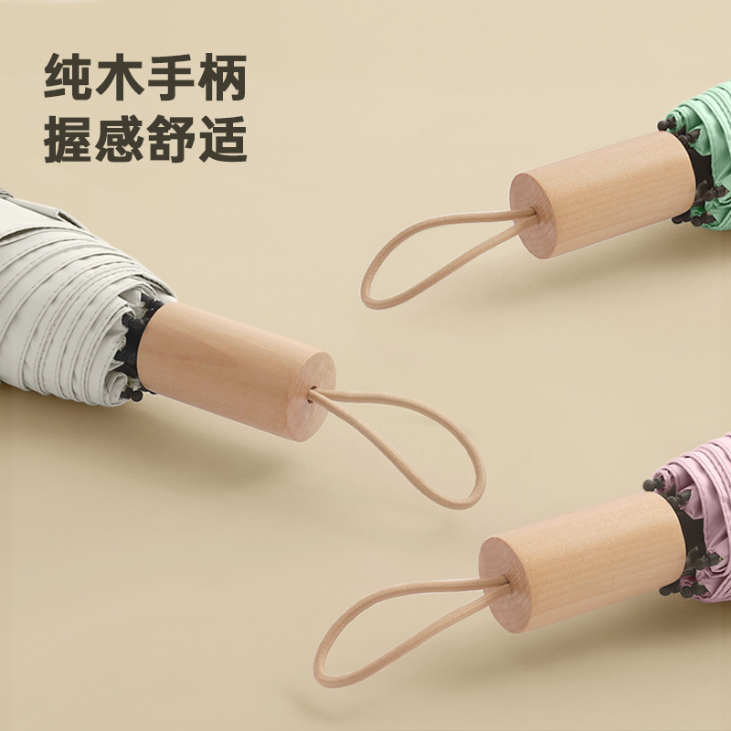 높은 가치의 컬러 접착제 단단한 나무 손잡이 간단한 높은 수준의 감각 자외선 차단 자외선 보호 차양 우산 맑고 비 이중 목적 우산스토어 가기