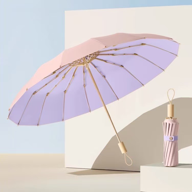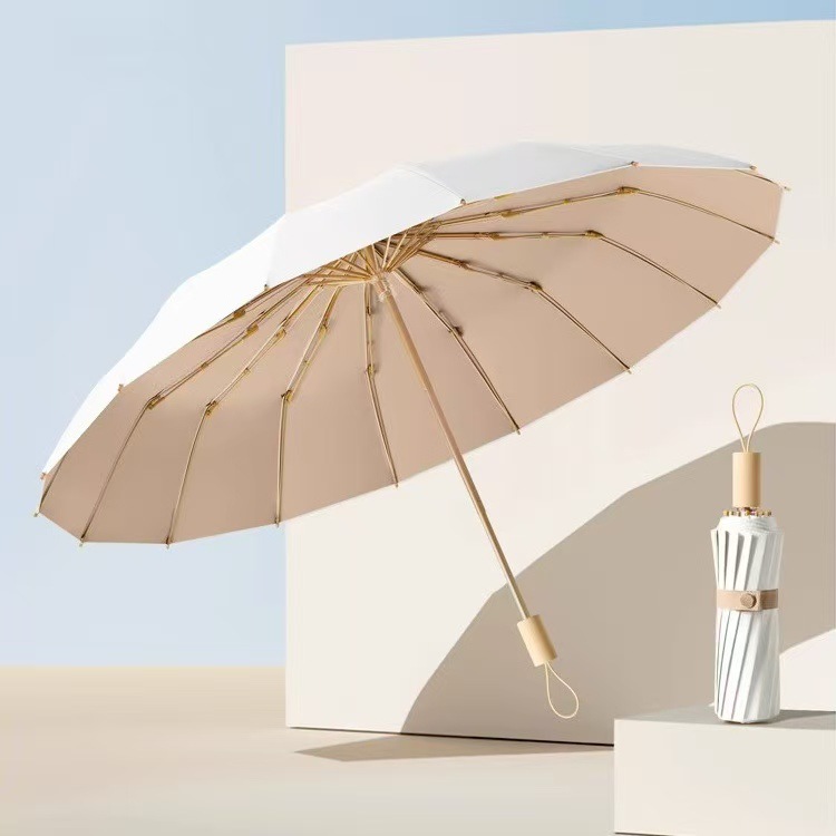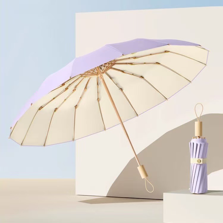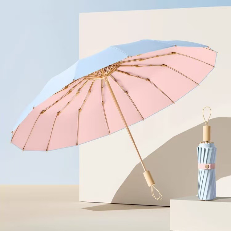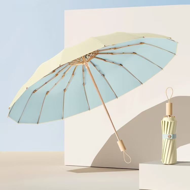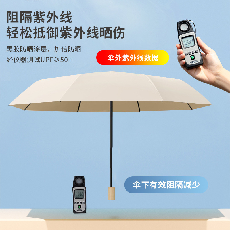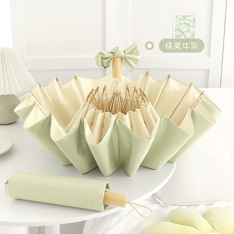 높은 가치의 컬러 접착제 단단한 나무 손잡이 간단한 높은 수준의 감각 자외선 차단 자외선 보호 차양 우산 맑고 비 이중 목적 우산스토어 가기