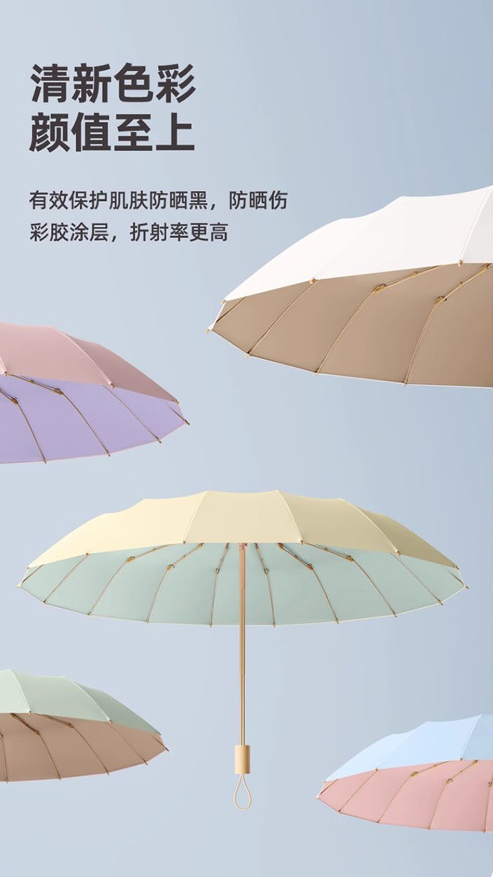 높은 가치의 컬러 접착제 단단한 나무 손잡이 간단한 높은 수준의 감각 자외선 차단 자외선 보호 차양 우산 맑고 비 이중 목적 우산