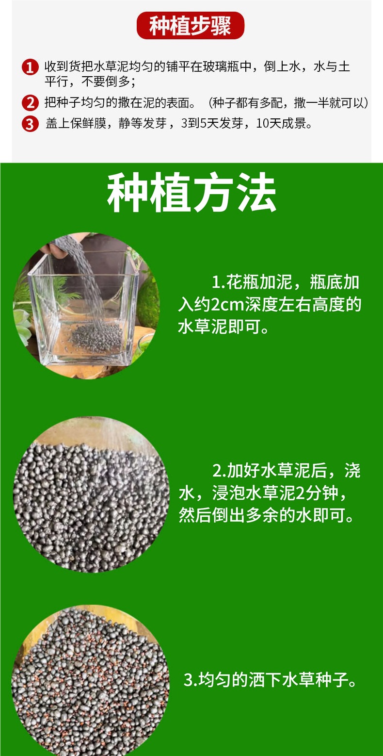 • !【10cm缸适合】牛毛水草1千粒+营养液+水草泥1斤[]