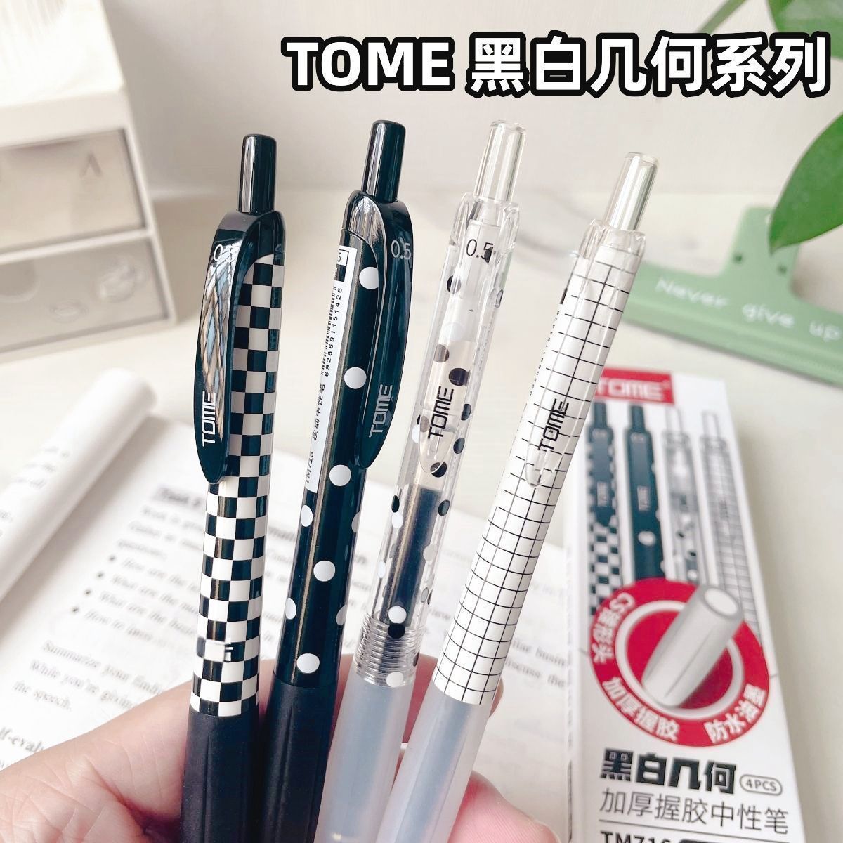 Tumi TM716 흑백 기하학 프레스 고가치 카본 블랙 시그니처 펜 학생 시험 브러시 젤 펜스토어 가기