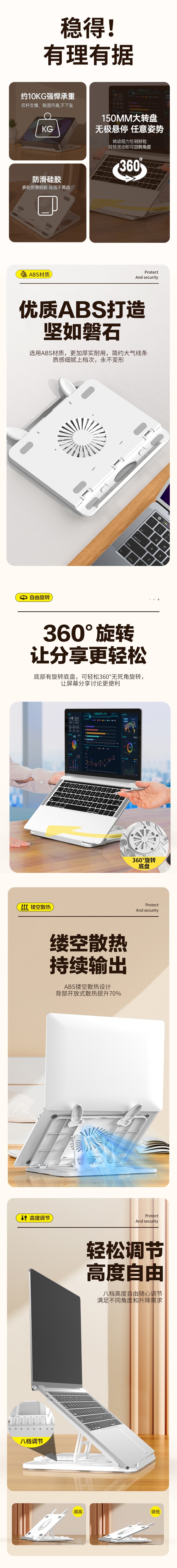 다기능 노트북 브래킷 컴퓨터 브래킷 스틸 골드 리프팅 편리한 높이 랙 베이스 접히는 열 랙