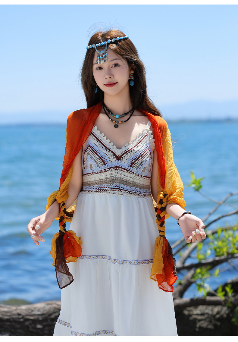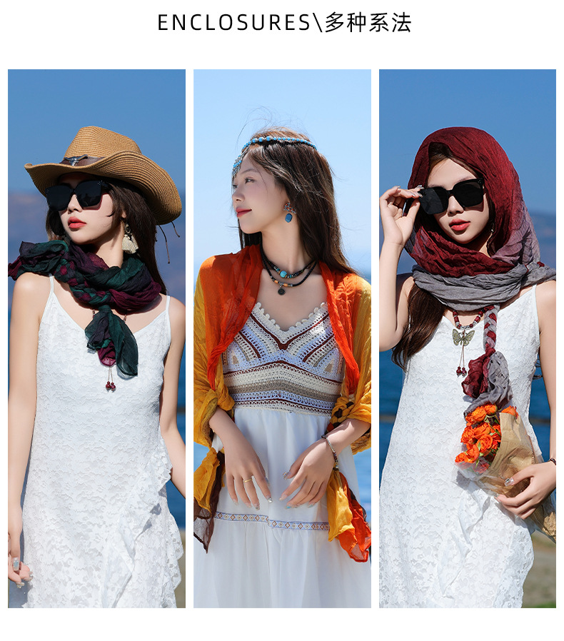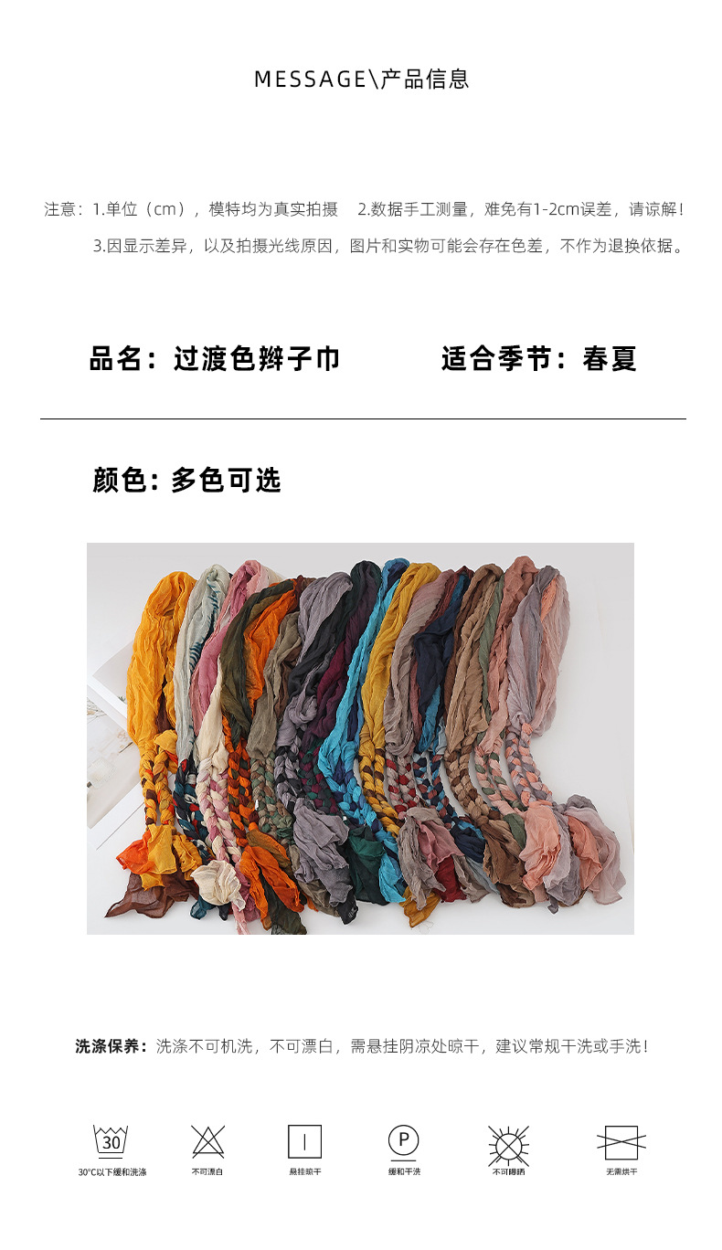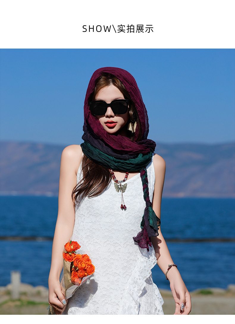 봄과 가을 다용도 바오터우 스카프, 야외용 얇은 면 및 린넨 땋은 스카프, 여행 사진, 과색 풀오버 숄스토어 가기